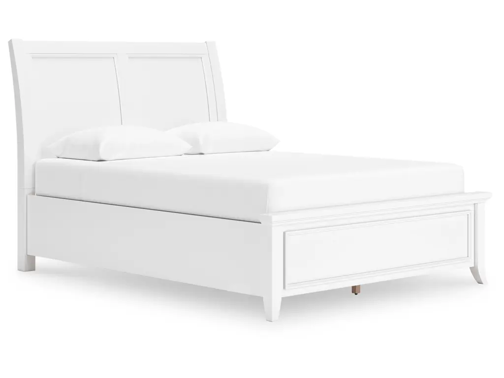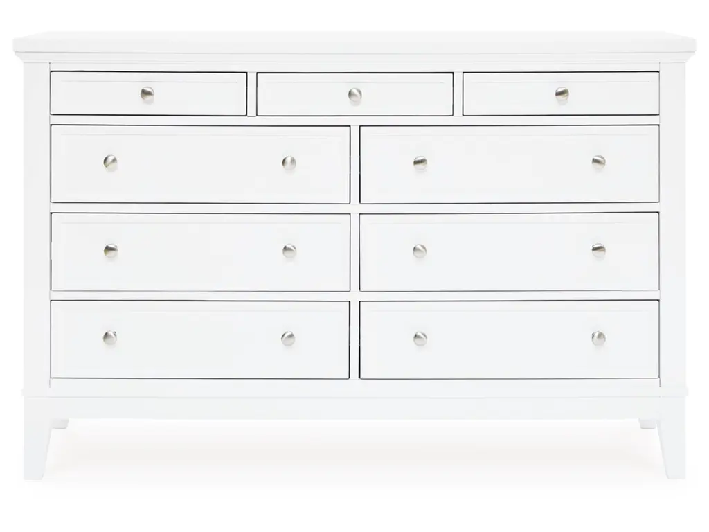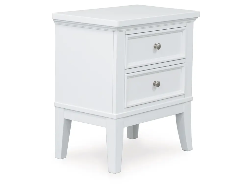 Clean, crisp and utterly contemporary. Brighten up your bedroom with the Trulani bedroom package. Pair the pieces with pops of color, or let the fresh-feeling white finish speak for itself—its versatile hue effortlessly adapts to your changing tastes. Stylized flare legs further elevate the set.