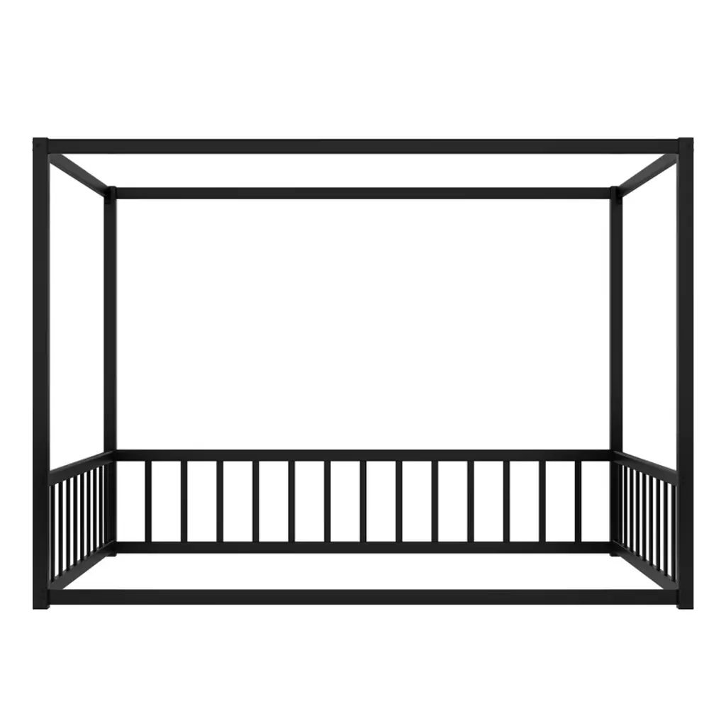 This twin size floor bed blends modern style with functional safety, featuring a creative house-style frame and multi-sided guardrails for a cozy yet protected sleeping space. Its open low-profile design is perfect for easy access, especially for kids. Crafted from high-quality iron with elliptical and D-shaped materials, it’s built for both strength and safety. With easy assembly and room for customization like adding a mosquito net, this charming bed frame is ideal for creating a playful, personalized sleep environment in any bedroom.