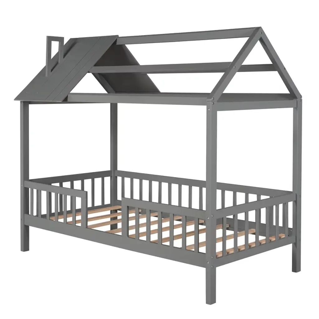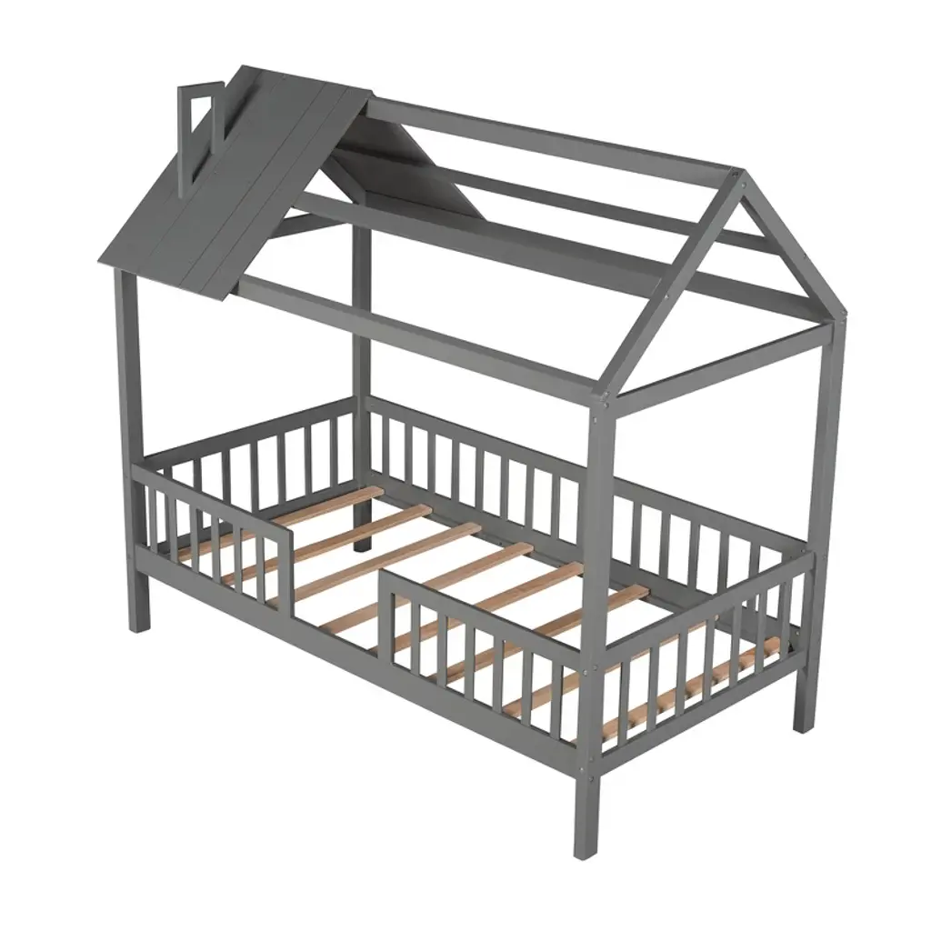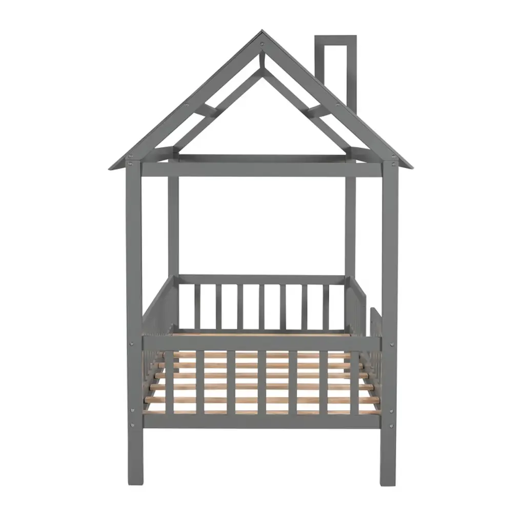 Product Features [Playhouse Design]: Featuring roof and fence, this unique bed creates a fun and adorable space that not only serves as a comfortable sleeping area but also doubles as a space for your kids to play and have fun.[Decorate as you wish]: Both the front and back rails can be decorated by yourself — anything you want can be hung on the rails. Use your imagination and create your own house![A Better Sleeping Environment]: Thanks to the semi-enclosed space, your kids will have their own sleeping space that affords a comforting atmosphere for better sleep while not sacrificing air circulation. The fence can also prevent kids from falling out of the bed.[Superior quality]: Crafted with pine wood, plywood and MDF board, this house bed is manufactured for sound stability and security that can withstand playing without dangerous wobbling, with a high weight capacity.[Dimensions]: Overall Product Dimension: 78.3" x 41.7" x 71.2" (L x W x H). This product comes in 1 separate package and may not be delivered at the same time. Mattress not included and some assembly is required, although we have provided clear instructions and tools. Description Twin Size Wood House Bed with Fence, White Featuring roof, chimney and fence, this bed offers a semi-enclosed play place perfect for kids to explore their imaginations. Designed with a neutral color of white, this bed is gender neutral and suitable for different people. With fence and a sturdy pine frame, this bed offers a safe space for your kids to get a good night's sleep. Weight & Dimensions Overall Product Dimension: 78.3"L x 41.7"W x 71.2"HDetail Product Dimension: Please refer to the Size imageNumber of Package: 1Package Dimension: Please refer to the SpecificationOverall Product Weight: 92 LBSWeight Capacity: 250 LBSRecommended Mattress Thickness: 8" Specifications Product Type: House BedSize: TwinMaterial: Plywood + MDF + PinewoodLevel of Assembly: Full Assembly NeededBox Spring Required: NoMattress Included: NoEstimated Time to Assemble: 50 minutesSuggested Number of People: 2Additional Tools Required: All Tools IncludedAvoid Power Tools: YesNumber of Slats: 8