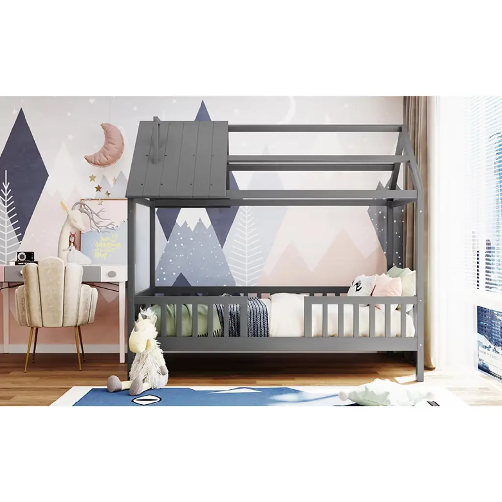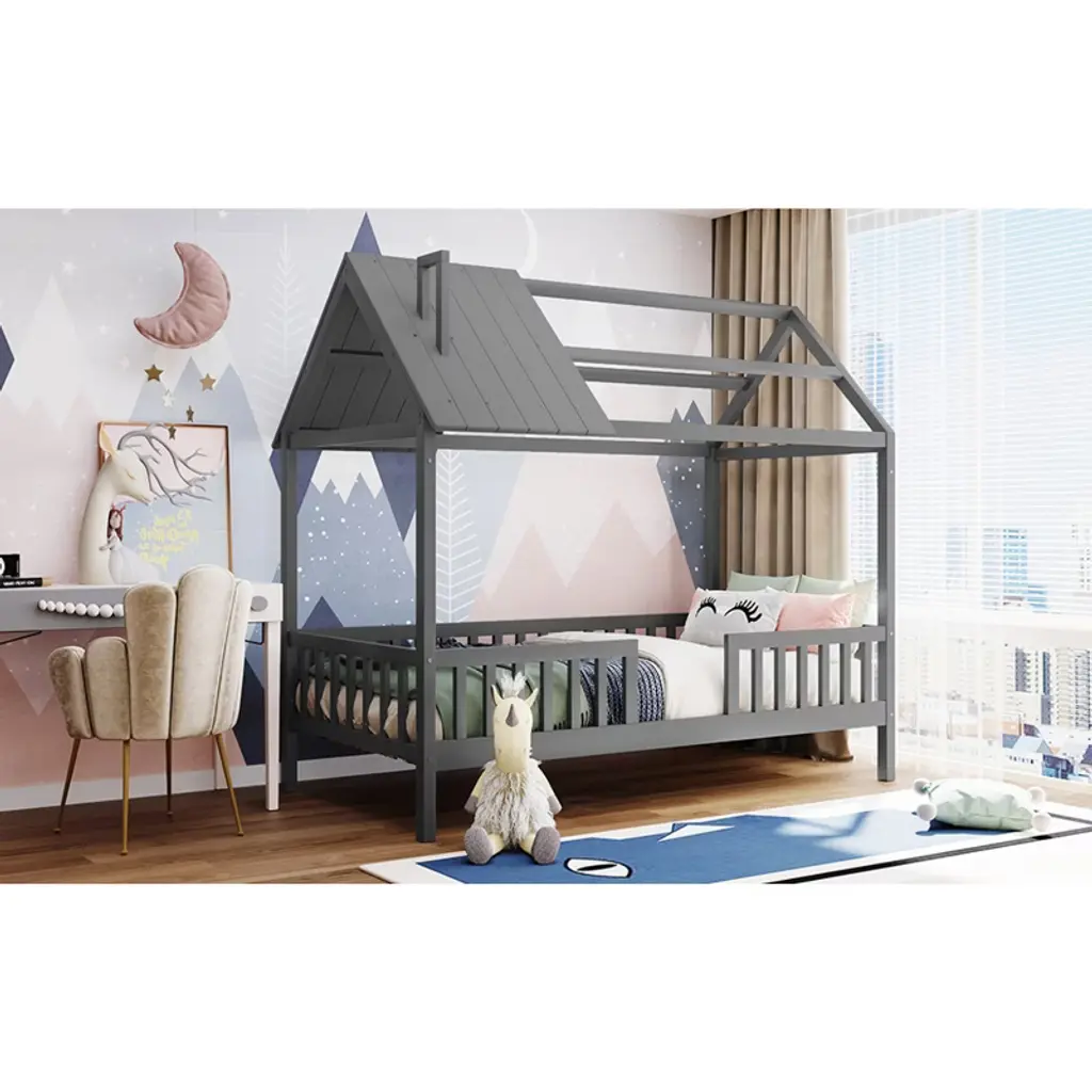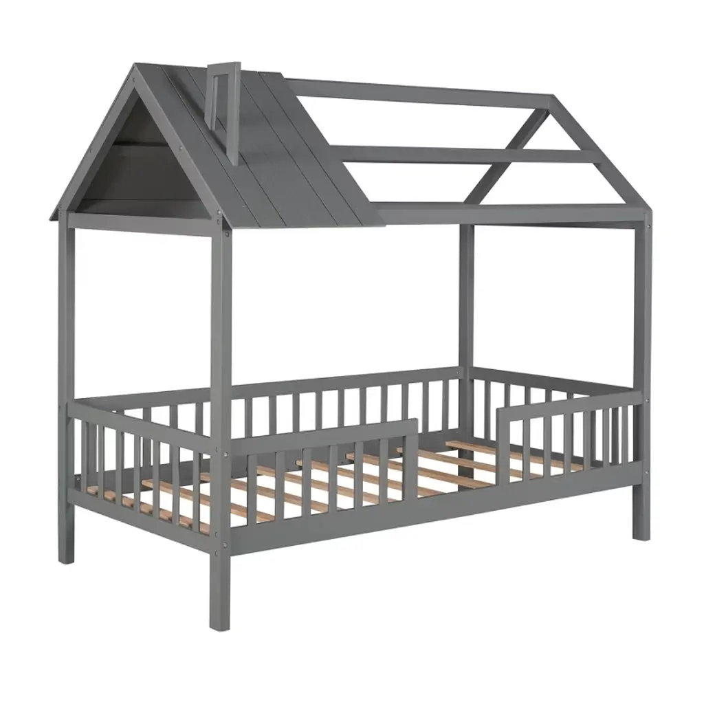 Product Features [Playhouse Design]: Featuring roof and fence, this unique bed creates a fun and adorable space that not only serves as a comfortable sleeping area but also doubles as a space for your kids to play and have fun.[Decorate as you wish]: Both the front and back rails can be decorated by yourself — anything you want can be hung on the rails. Use your imagination and create your own house![A Better Sleeping Environment]: Thanks to the semi-enclosed space, your kids will have their own sleeping space that affords a comforting atmosphere for better sleep while not sacrificing air circulation. The fence can also prevent kids from falling out of the bed.[Superior quality]: Crafted with pine wood, plywood and MDF board, this house bed is manufactured for sound stability and security that can withstand playing without dangerous wobbling, with a high weight capacity.[Dimensions]: Overall Product Dimension: 78.3" x 41.7" x 71.2" (L x W x H). This product comes in 1 separate package and may not be delivered at the same time. Mattress not included and some assembly is required, although we have provided clear instructions and tools. Description Twin Size Wood House Bed with Fence, White Featuring roof, chimney and fence, this bed offers a semi-enclosed play place perfect for kids to explore their imaginations. Designed with a neutral color of white, this bed is gender neutral and suitable for different people. With fence and a sturdy pine frame, this bed offers a safe space for your kids to get a good night's sleep. Weight & Dimensions Overall Product Dimension: 78.3"L x 41.7"W x 71.2"HDetail Product Dimension: Please refer to the Size imageNumber of Package: 1Package Dimension: Please refer to the SpecificationOverall Product Weight: 92 LBSWeight Capacity: 250 LBSRecommended Mattress Thickness: 8" Specifications Product Type: House BedSize: TwinMaterial: Plywood + MDF + PinewoodLevel of Assembly: Full Assembly NeededBox Spring Required: NoMattress Included: NoEstimated Time to Assemble: 50 minutesSuggested Number of People: 2Additional Tools Required: All Tools IncludedAvoid Power Tools: YesNumber of Slats: 8