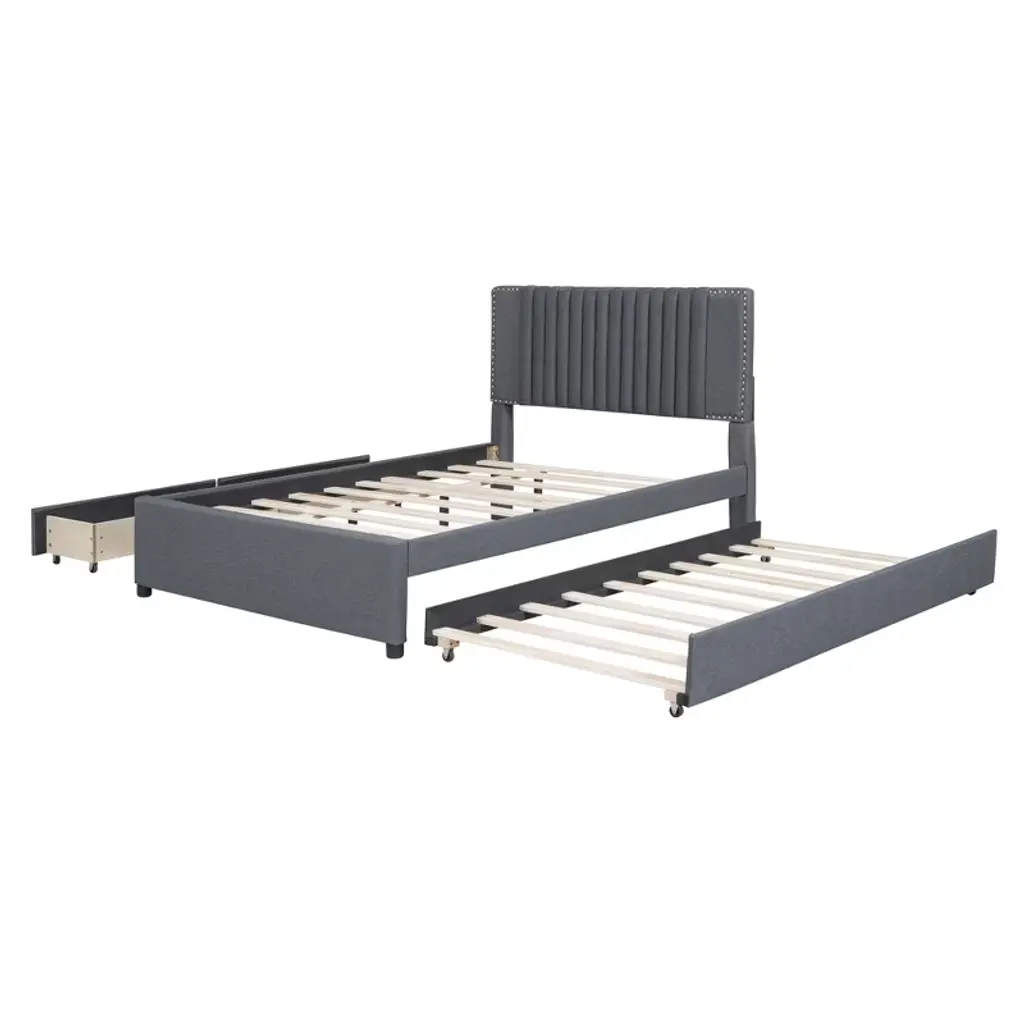 Upholstered Platform Bed With Storage & Twin Trundle - Classic Headboard