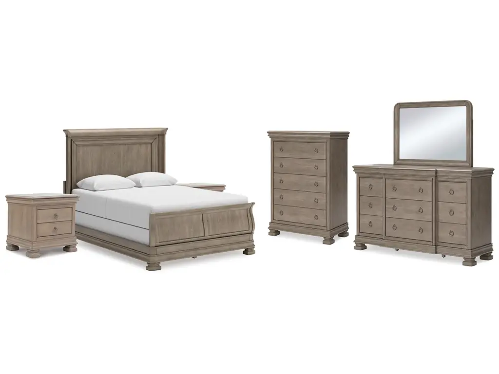 Vandenmore California King Panel Bed With Mirrored Dresser And 2 Nightstands