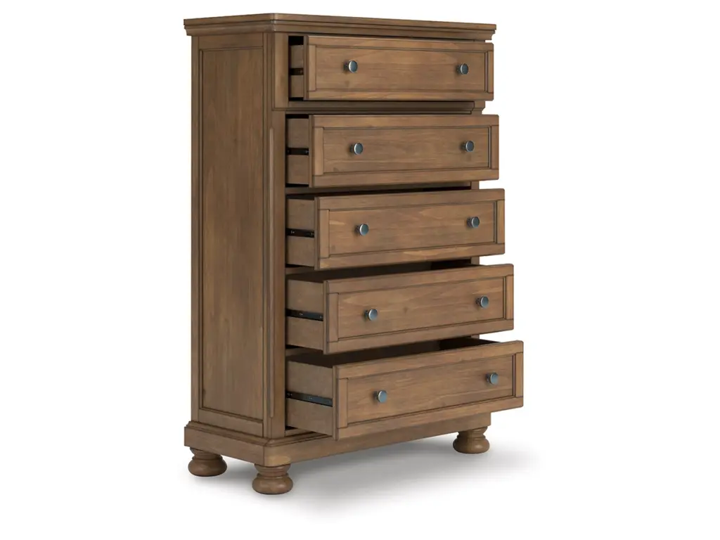 A relaxed take on casual traditional design, the Vandenmore bedroom package strikes a comfy pose with a classic sensibility. Its timeless design and chestnut brown wood tone create a welcoming retreat tailored to your laid-back lifestyle.