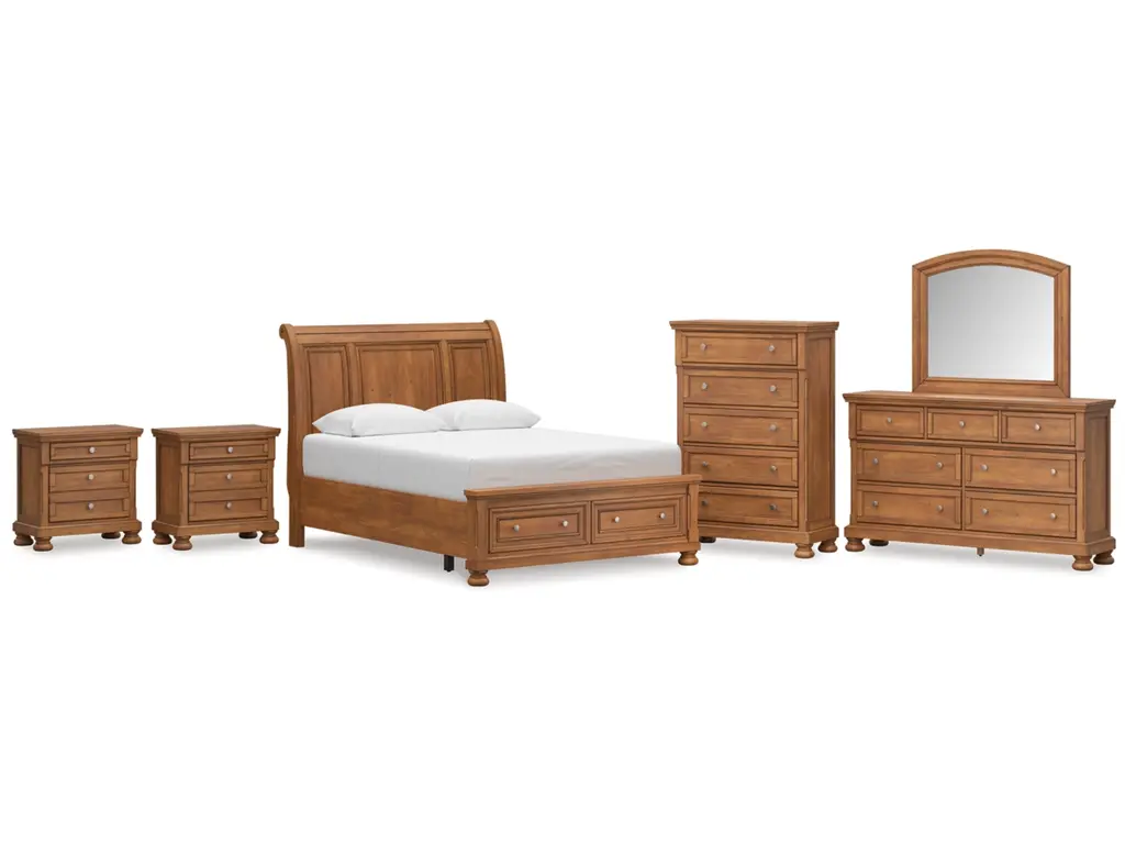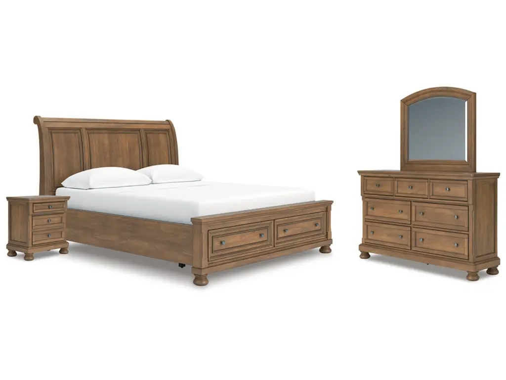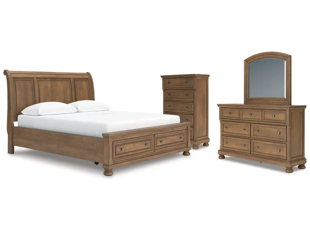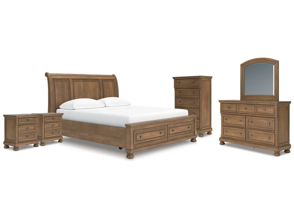 Vandenmore King Storage Sleigh Bed With Mirrored Dresser, Chest And Nightstand