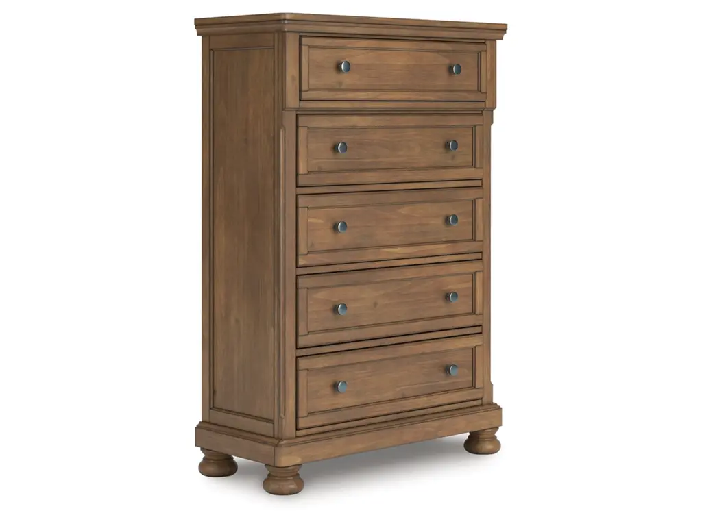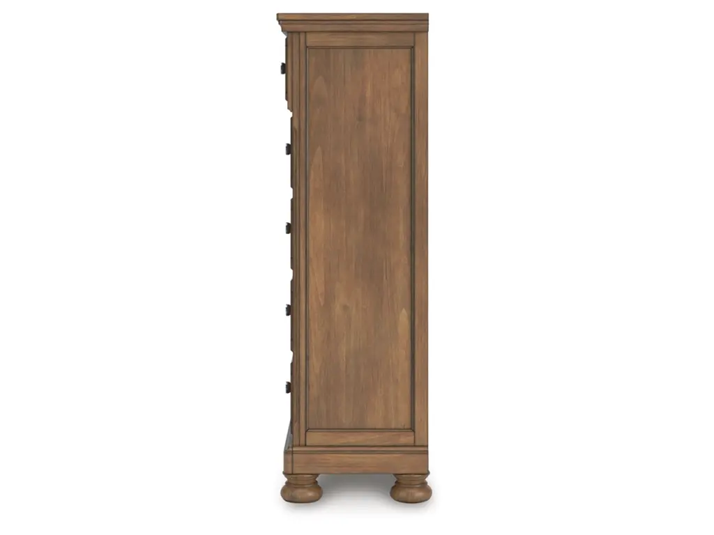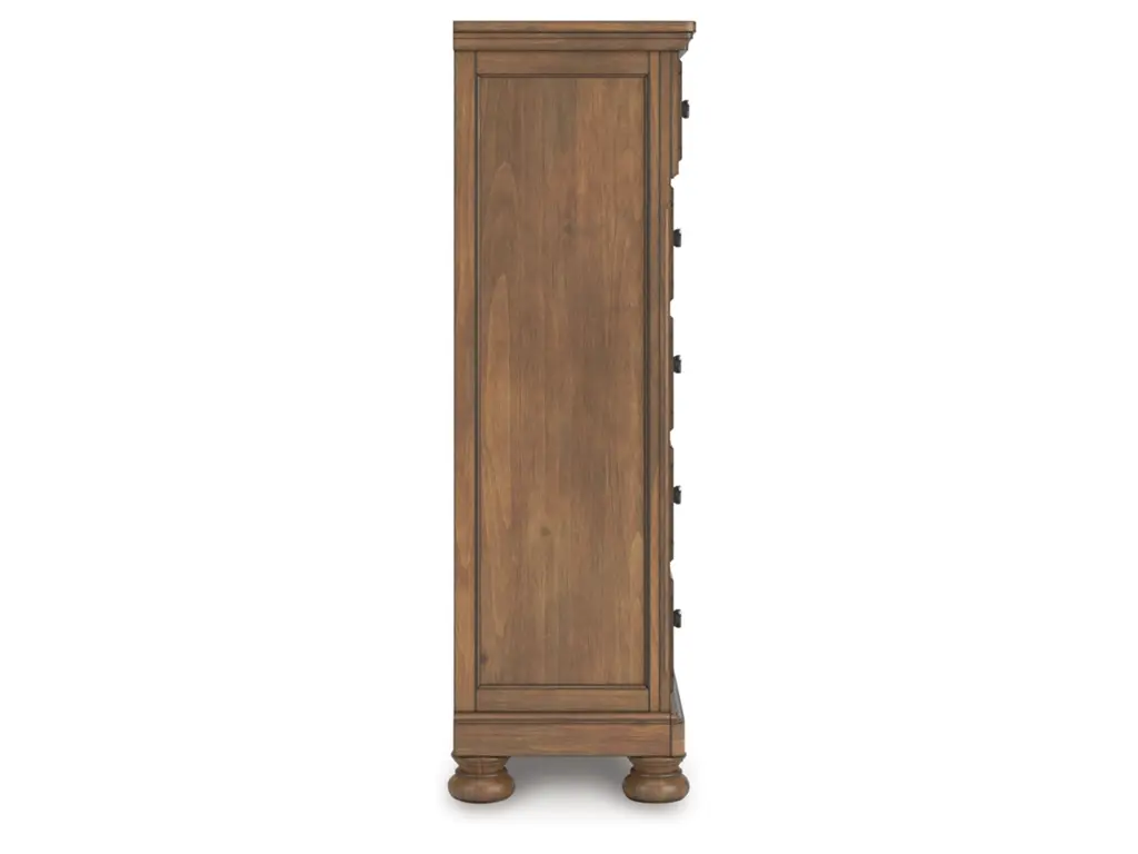 A relaxed take on casual traditional design, the Vandenmore bedroom package strikes a comfy pose with a classic sensibility. Its timeless design and chestnut brown wood tone create a welcoming retreat tailored to your laid-back lifestyle.