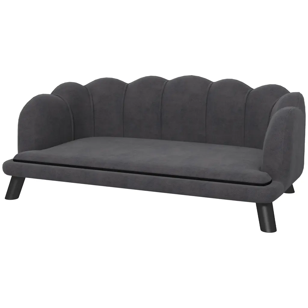 Velvet Large Dog Couch With Foam Cushioning, Soft And Cute Dog Bed With Pearl Design, Dog Sofa For Big And Medium Dogs - Grey - Grey