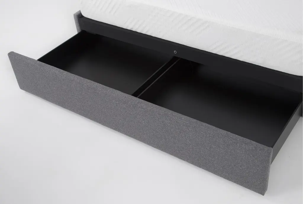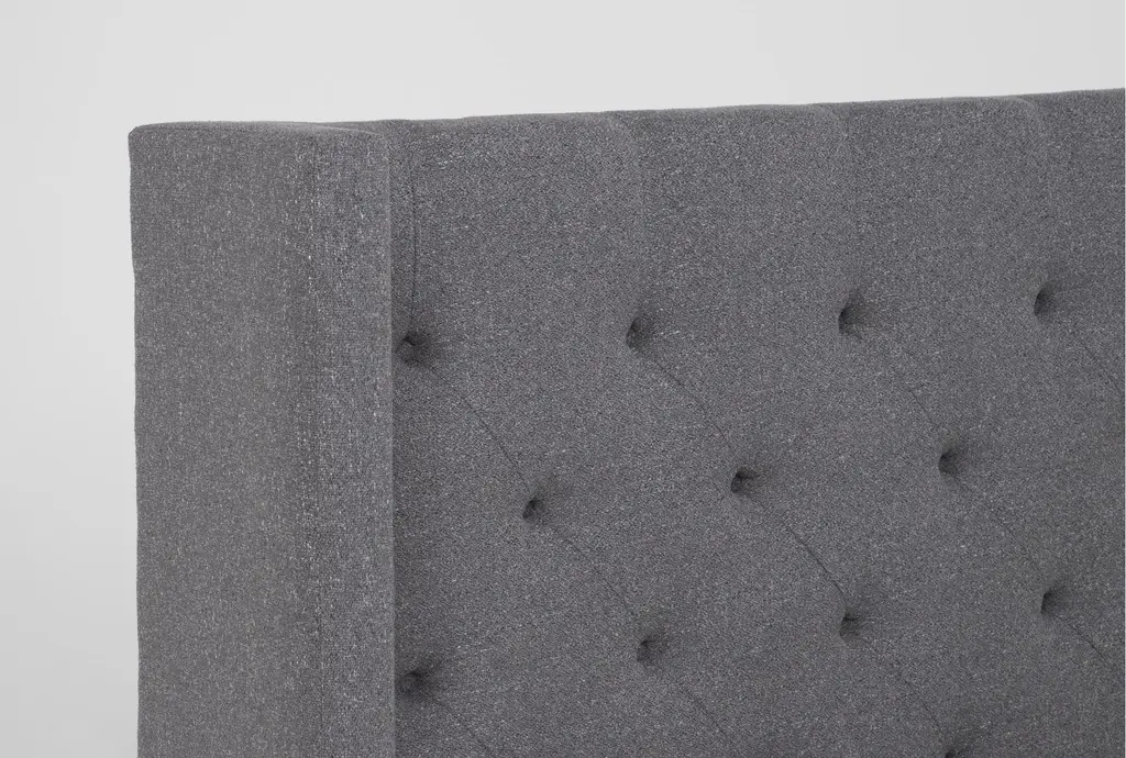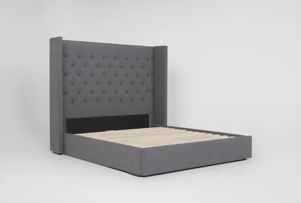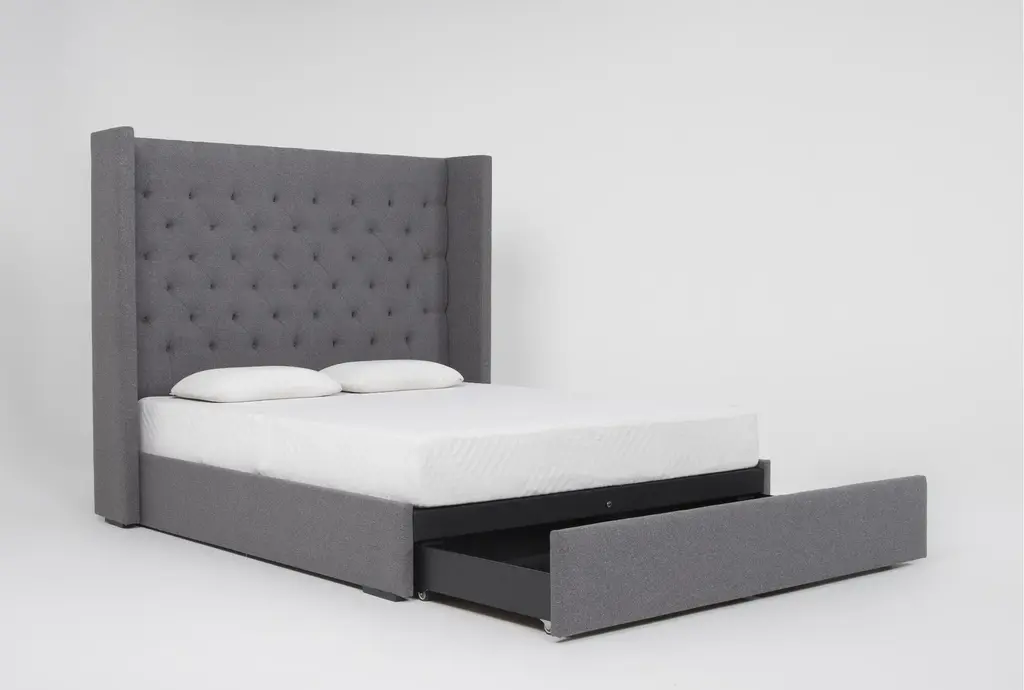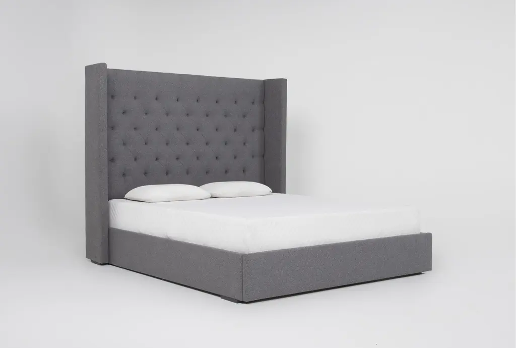 Bring a touch of modern sophistication to your bedroom with the Vera Dream Grey Diamond Tufted California King Upholstered Shelter Platform Bed with Storage. The stunning diamond tufted headboard adds a luxurious feel, while the grey fabric complements any bedroom décor. With built-in storage drawers, this platform bed is both stylish and functional.