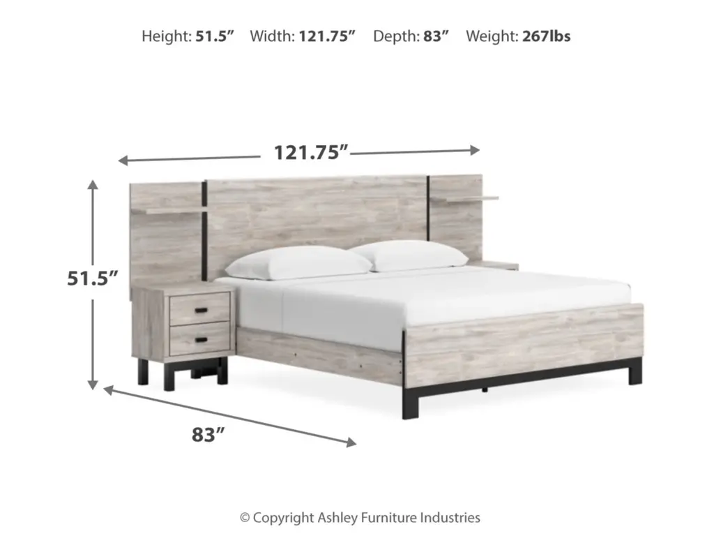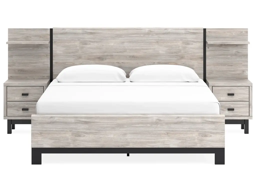 Vessalli King Panel Bed With Headboard Extensions And 2 Nightstands