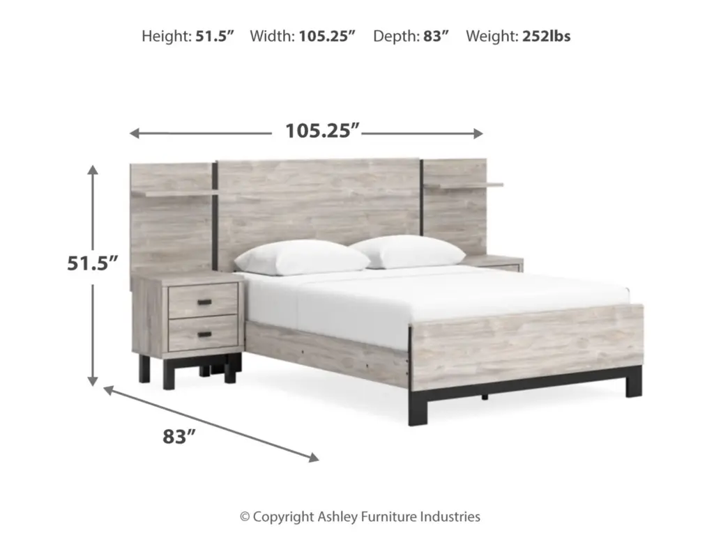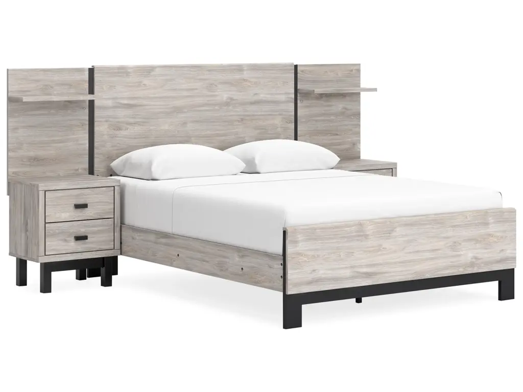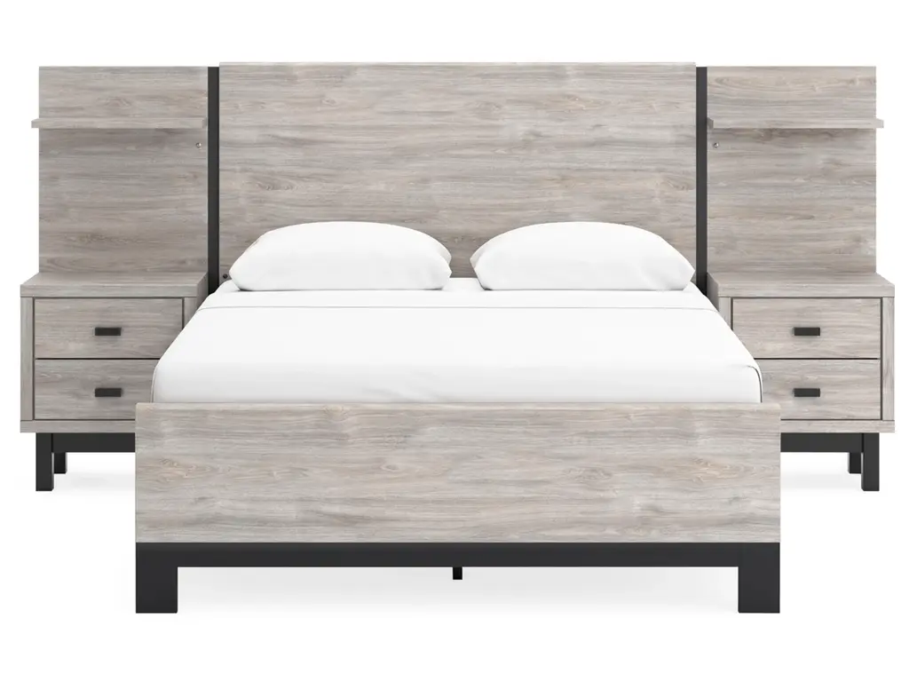 Vessalli Queen Panel Bed With Headboard Extensions And 2 Nightstands