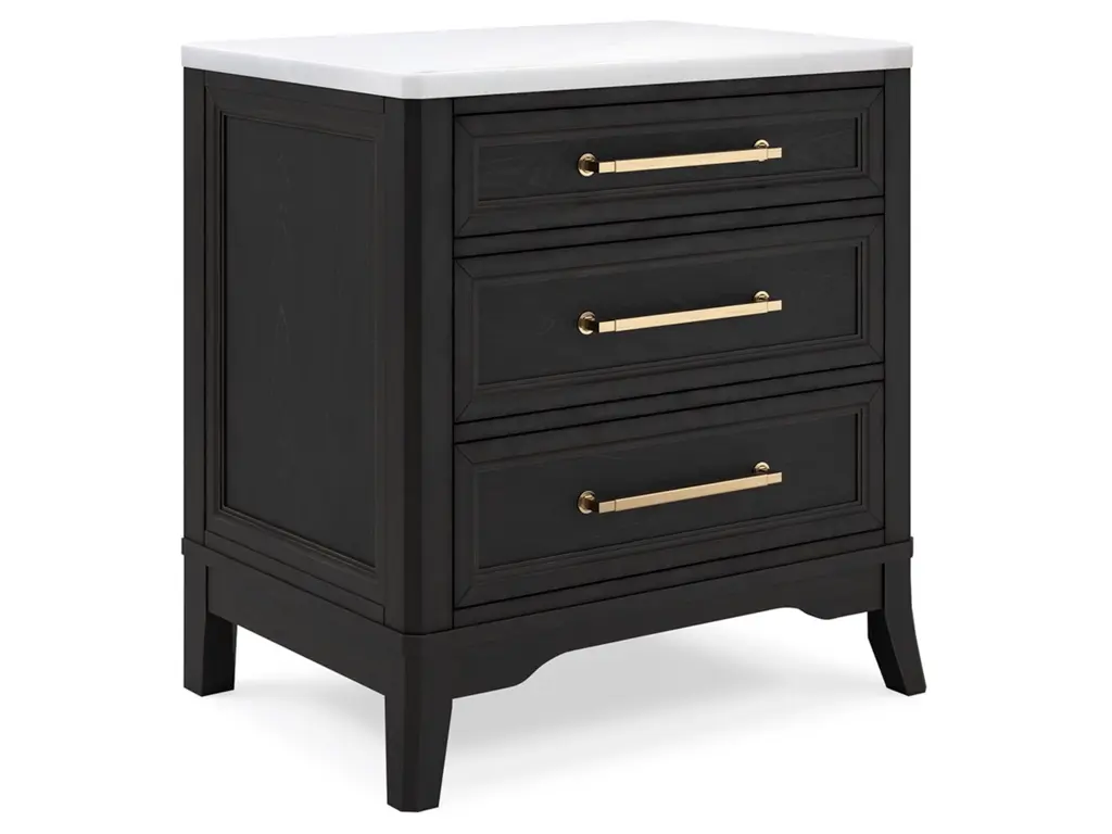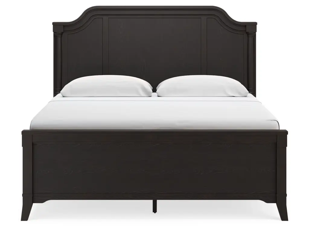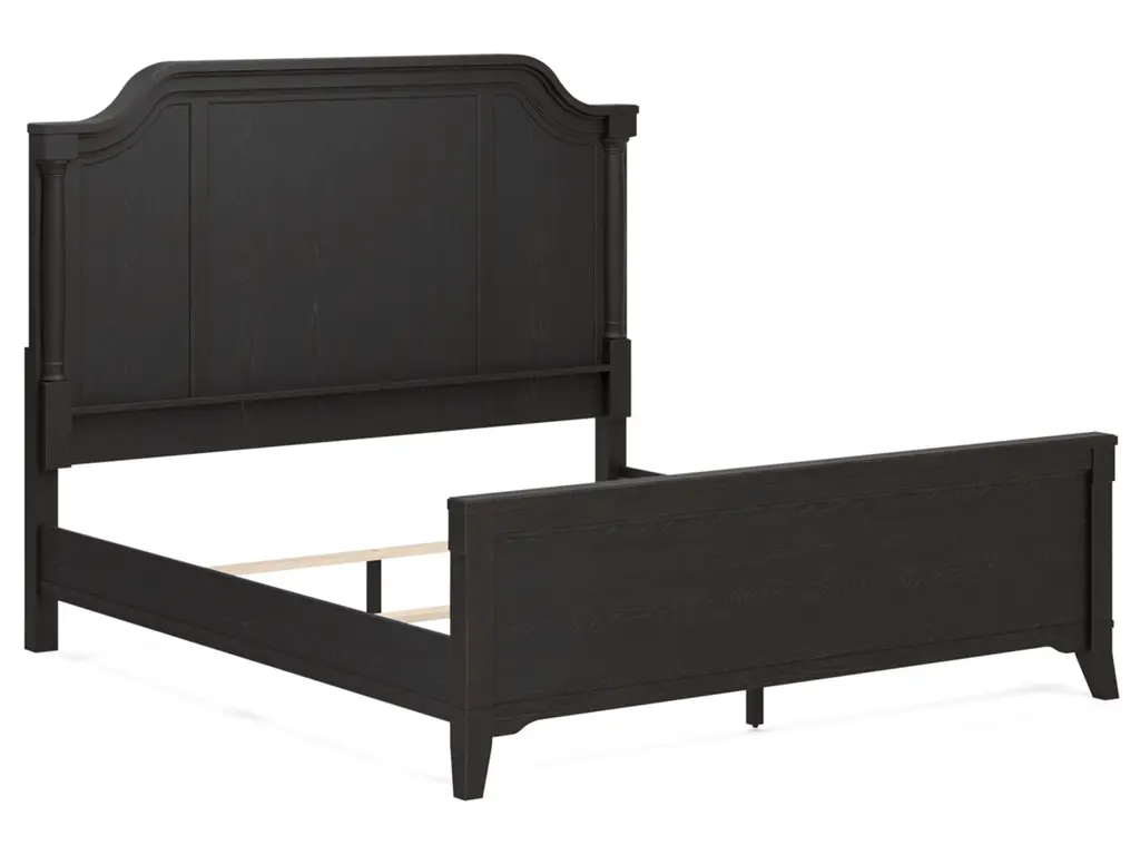 For those who love the classic profiles of traditional design—but want to forego the overly formal details—behold the Welltern bedroom package. Saber legs set with shaped lower aprons add a distinctive touch. A rich layered black finish on the textured wood grain surface with rubbed-through edges offers a subtle sense of gently aged charm. What a beautiful take on urban revival design.