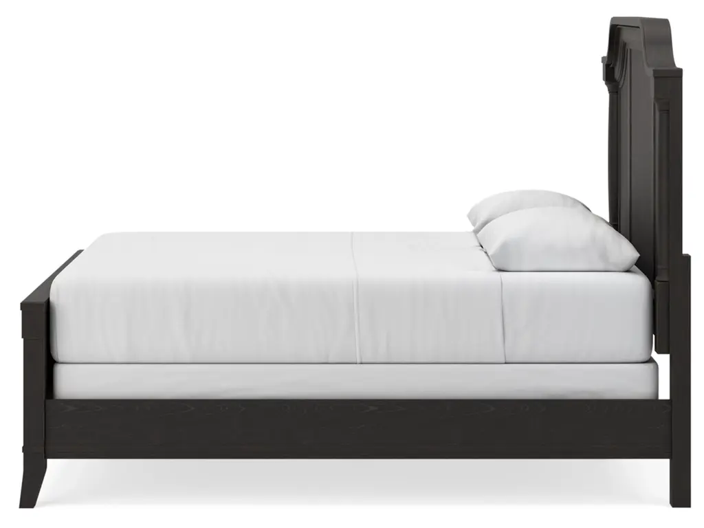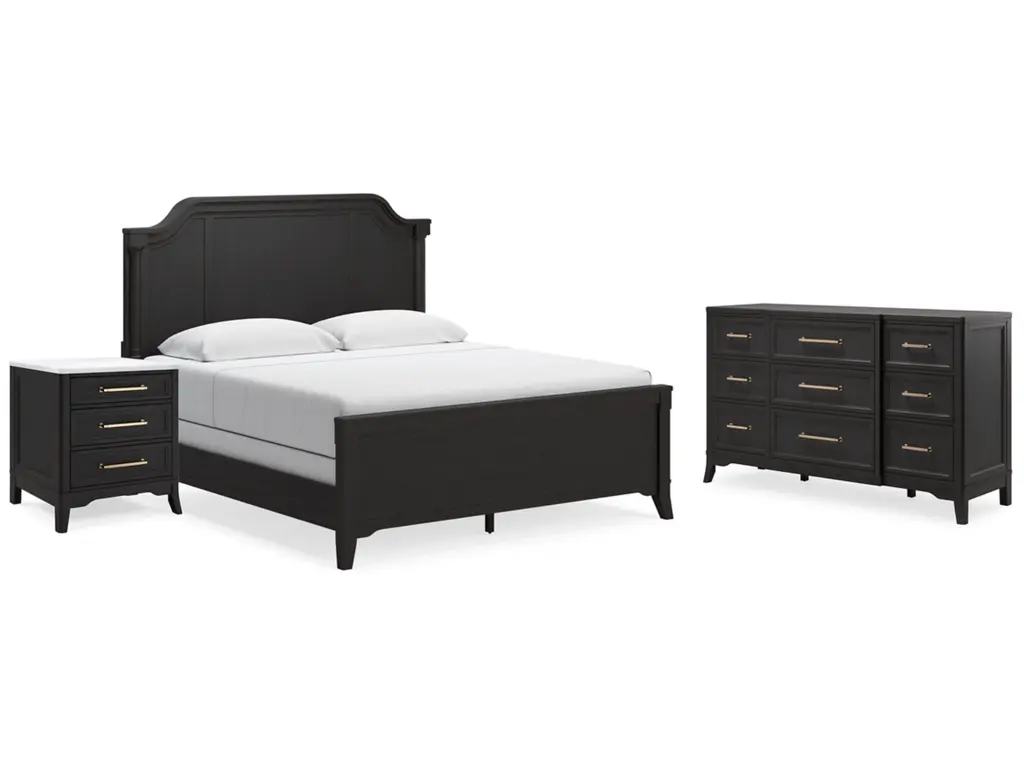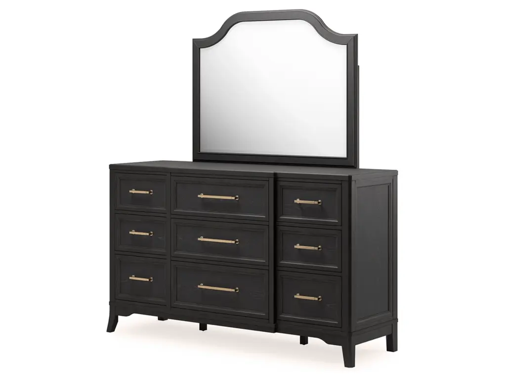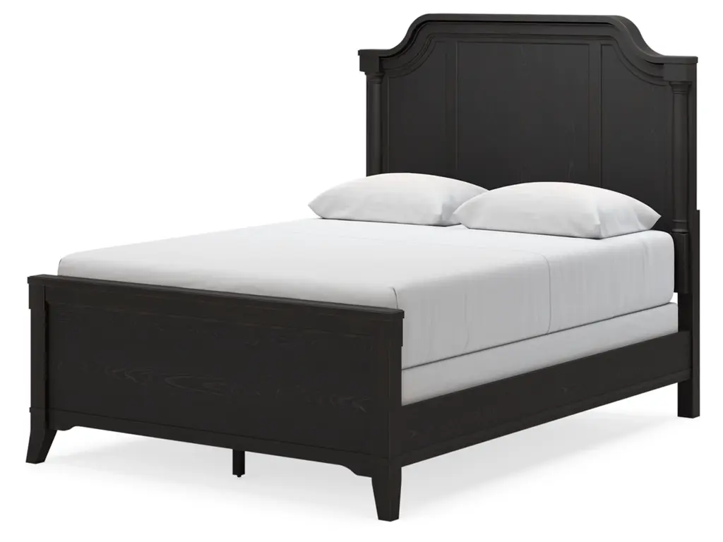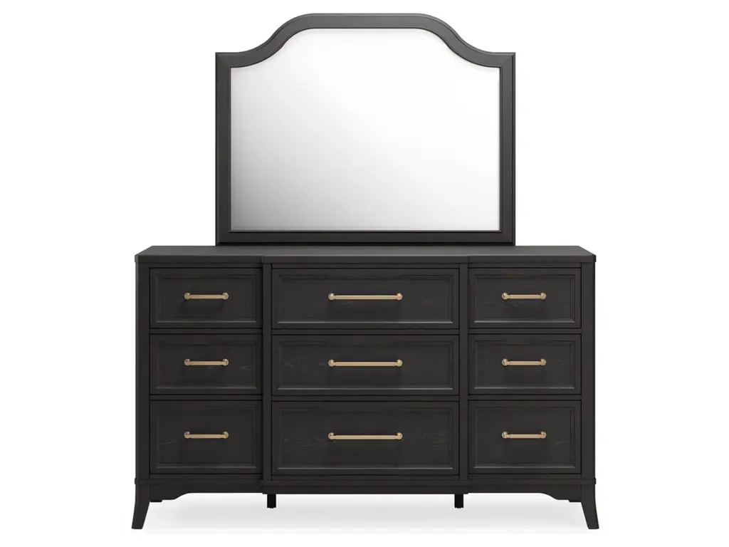 For those who love the classic profiles of traditional design—but want to forego the overly formal details—behold the Welltern bedroom package. Saber legs set with shaped lower aprons add a distinctive touch. A rich layered black finish on the textured wood grain surface with rubbed-through edges offers a subtle sense of gently aged charm. What a beautiful take on urban revival design.
