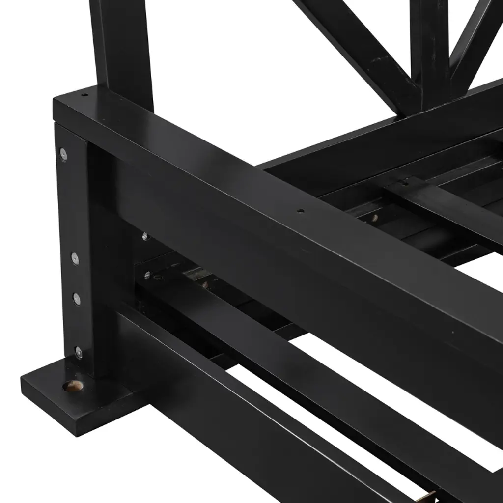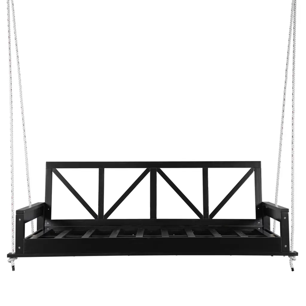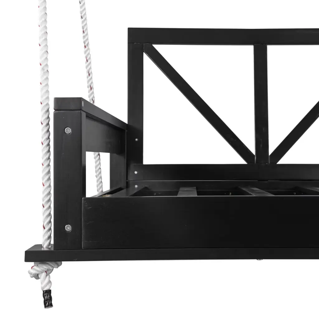 Whisen Twin Size Acacia Wood Modern Patio Swing Bed With Hemp Ropes - Black