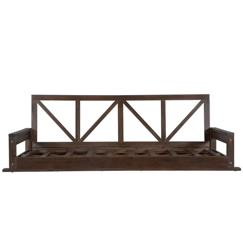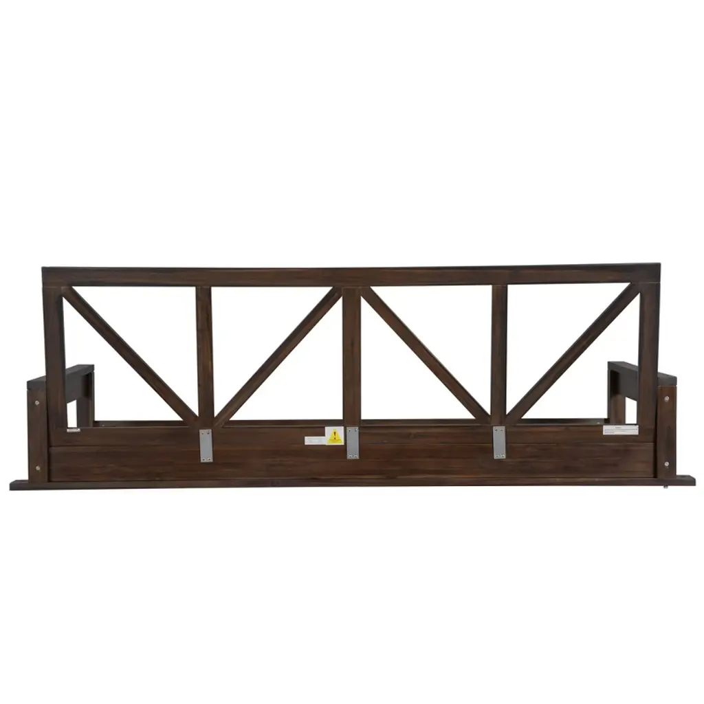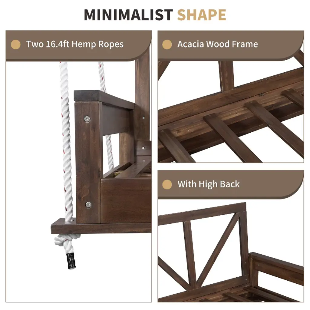 Enjoy outdoor comfort and style with this twin-size porch swing bed, crafted from durable, weather-resistant acacia wood. Available in multiple finishes, it blends beautifully with any patio, garden, or porch. The high-back ergonomic design offers lumbar support, making it perfect for reading, relaxing, or stargazing. With reinforced joints, sturdy side arms, and a 350lbs weight capacity, it ensures safe, stable use. Two included 16.4ft hemp ropes provide strong, secure hanging on porches or pergolas. Whether you're spending a quiet moment alone or lounging with a pet, this swing bed creates a cozy retreat right in your own backyard.