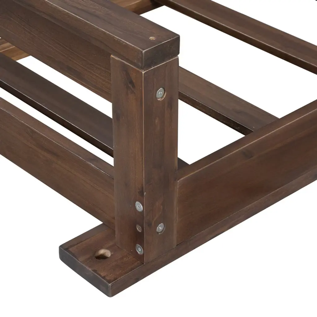 Whisen Twin Size Acacia Wood Modern Patio Swing Bed With Hemp Ropes - Brown