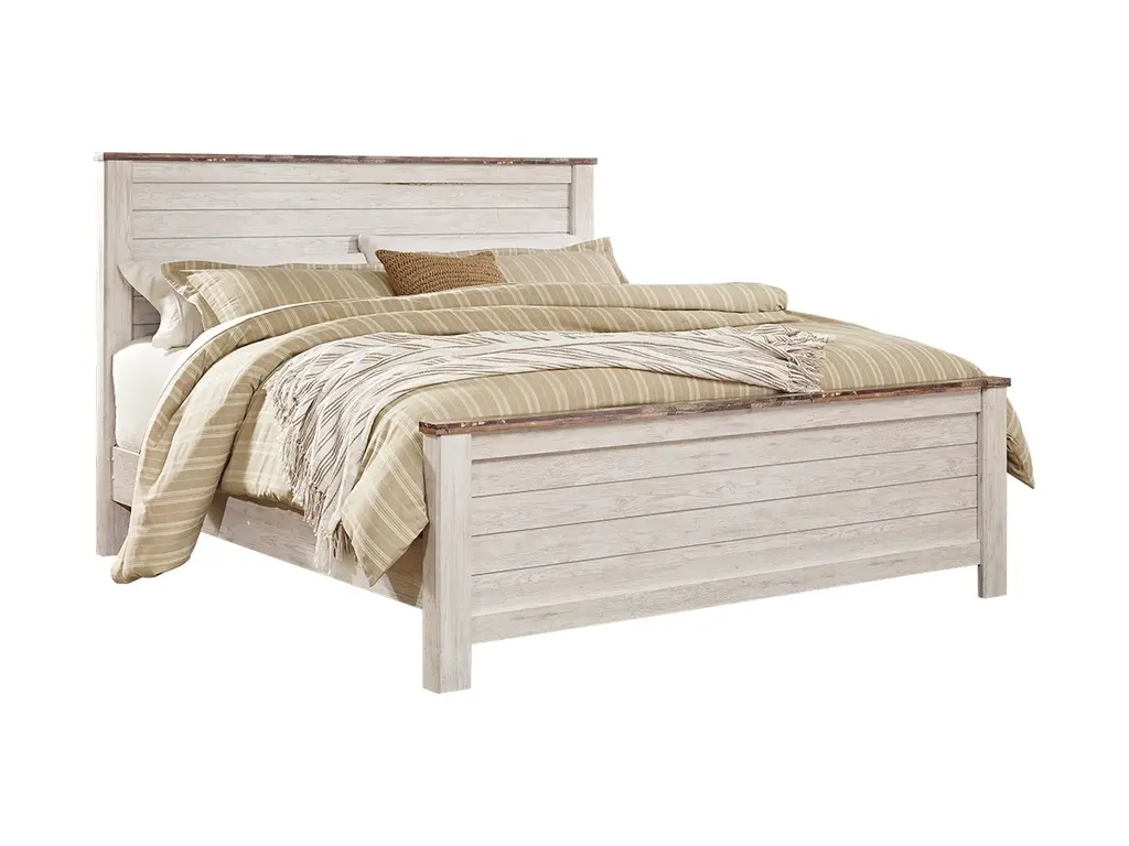 The ultimate look for a beach cottage or shabby chic inspired retreat, the Willowton bedroom set carries you away to a dreamy time and place. Its whitewash finish is wonderfully easy on the eyes. The plank-style detailing incorporates a classically rustic touch that's so homey and comforting.