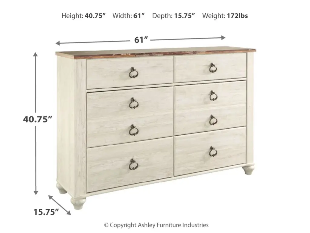 The ultimate look for a beach cottage or shabby chic inspired retreat, the Willowton bedroom set carries you away to a dreamy time and place. Its whitewash finish is wonderfully easy on the eyes. The plank-style detailing incorporates a classically rustic touch that's so homey and comforting.