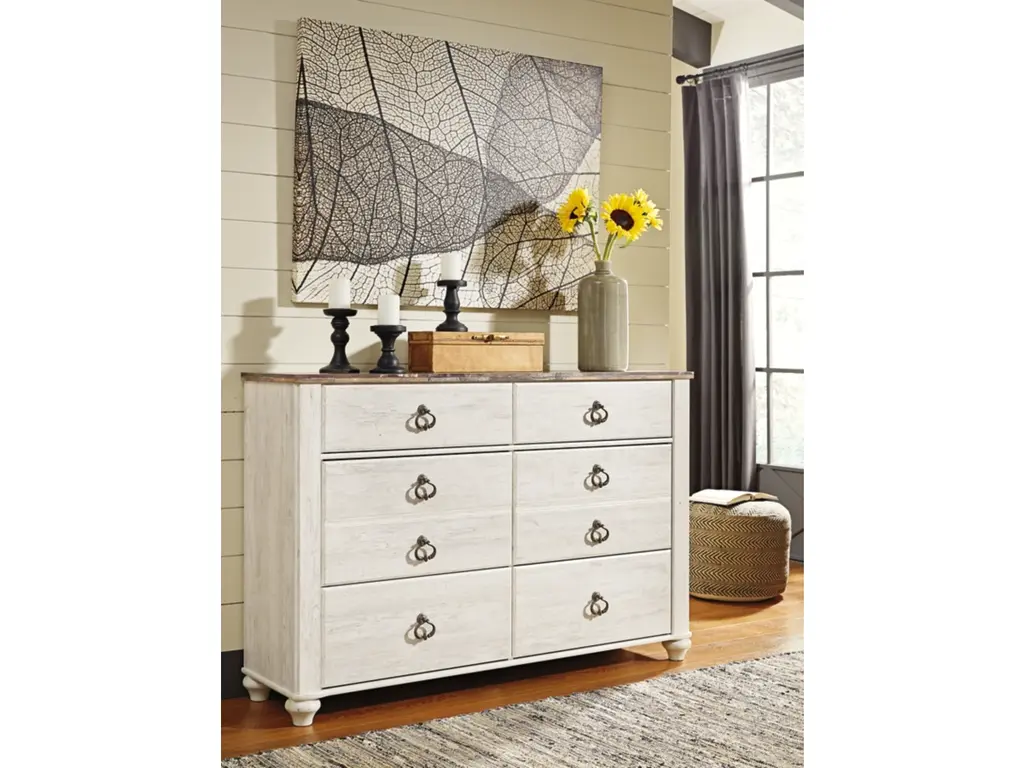 The ultimate look for a beach cottage or shabby chic inspired retreat, the Willowton bedroom set carries you away to a dreamy time and place. Its whitewash finish is wondery easy on the eyes. The plank-style detailing incorporates a classically rustic touch that's so homey and comforting.