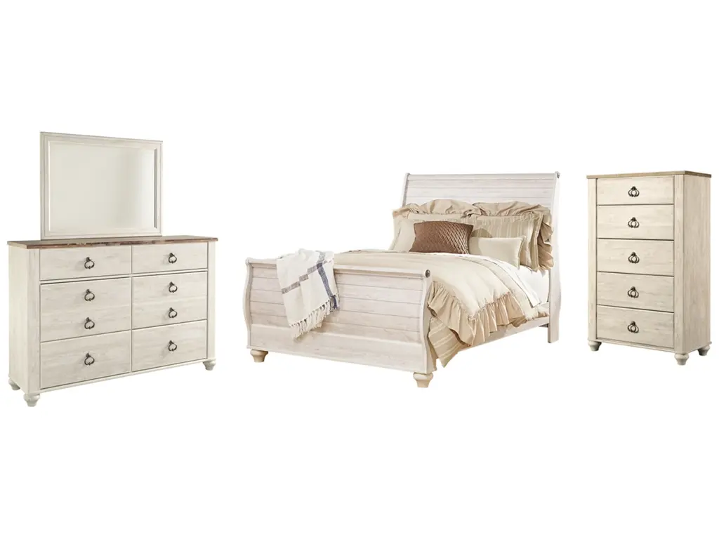 Willowton Queen Sleigh Bed With Mirrored Dresser And 2 Nightstands