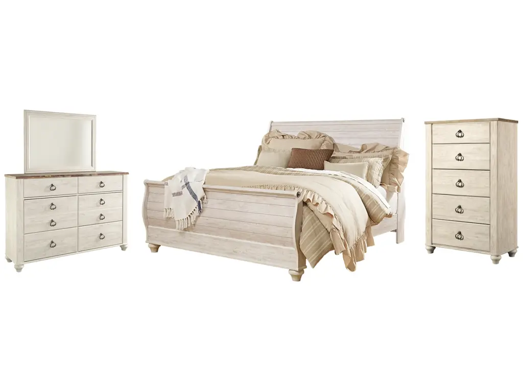 The ultimate look for a beach cottage or shabby chic inspired retreat, the Willowton bedroom set carries you away to a dreamy time and place. Its whitewash finish is wonderfully easy on the eyes. The plank-style detailing incorporates a classically rustic touch that's so homey and comforting.