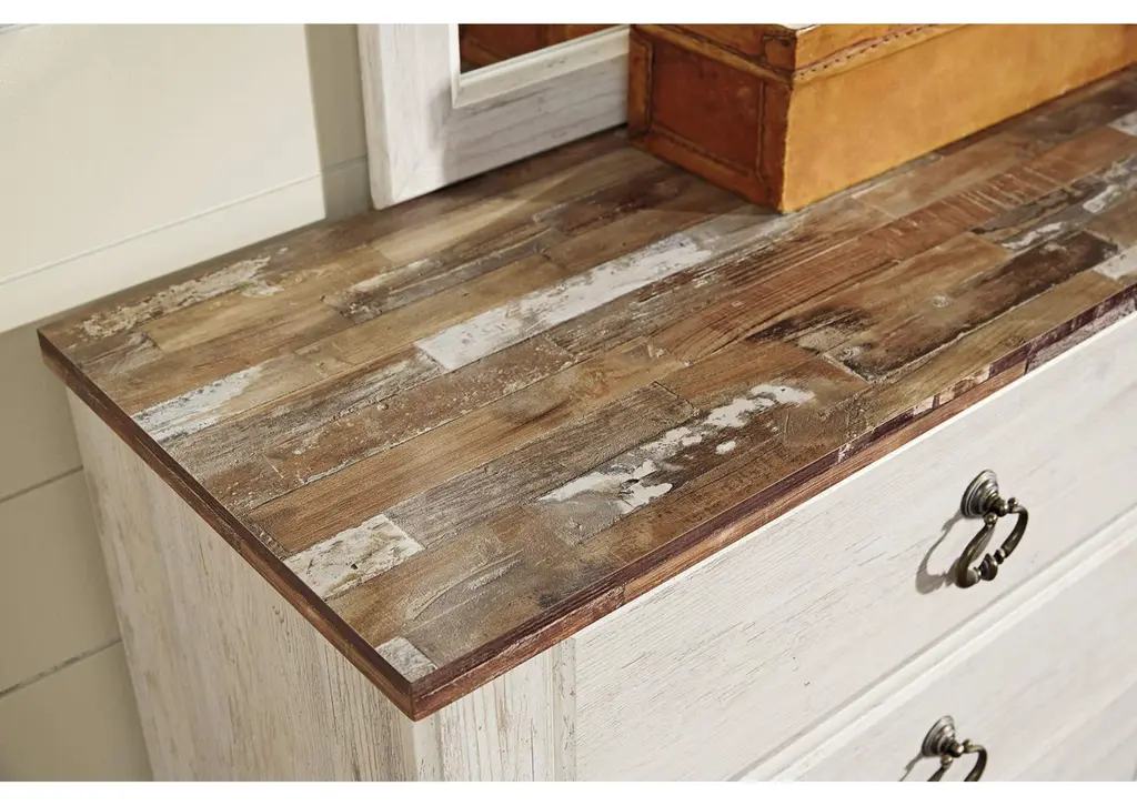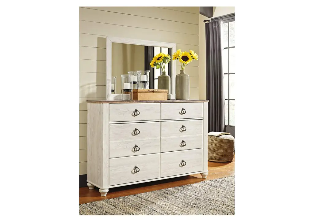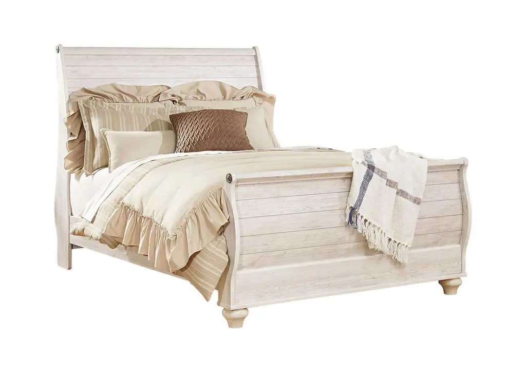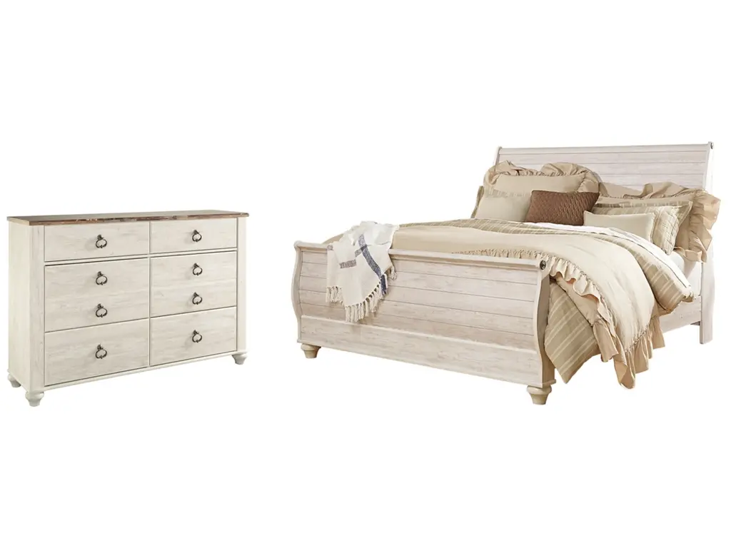 The ultimate look for a beach cottage or shabby chic inspired retreat, the Willowton bedroom set carries you away to a dreamy time and place. Its whitewash finish is wonderfully easy on the eyes. The plank-style detailing incorporates a classically rustic touch that's so homey and comforting.