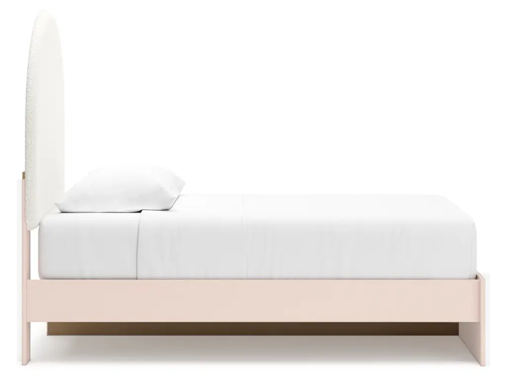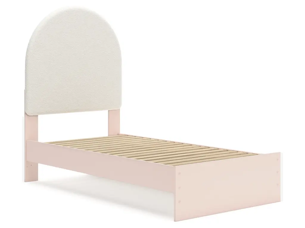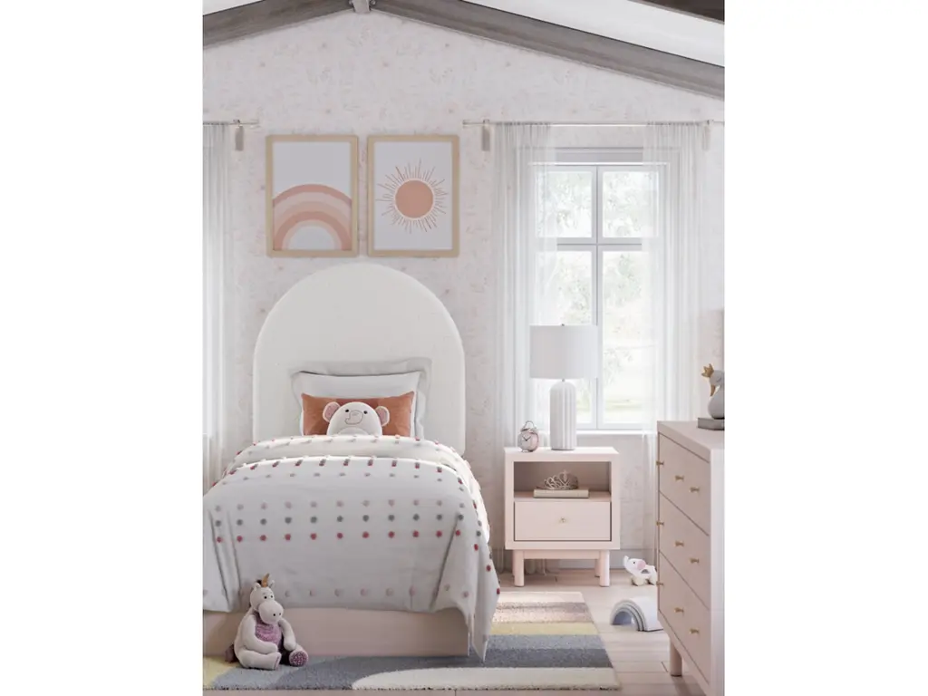 Pretty in pink. The Wistenpine twin upholstered panel bed with storage keeps the spirit of your home’s modern aesthetic while suiting all your young one’s needs. Its cozy-cute upholstery and subtle blush finish bring a playful, charming vibe to bedtime. Made for her and styled for you, it’s a lovely addition to a beautifully chic child’s bedroom.