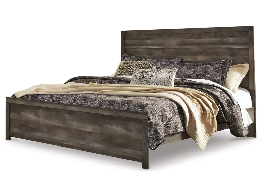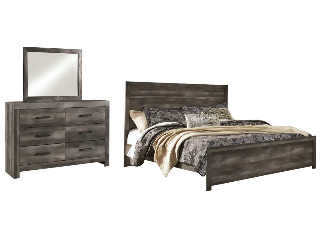 The Wynnlow bedroom package is sure to win your heart with its daring designer take on modern rustic. The bed, mirror and dresser’s crisp, clean and minimalist-chic profile is enriched with a striking replicated oak grain with thick plank styling and a weathered gray finish for that much more authentic character. The dresser features large-scale hooded pulls gracing the flush-mount drawers.