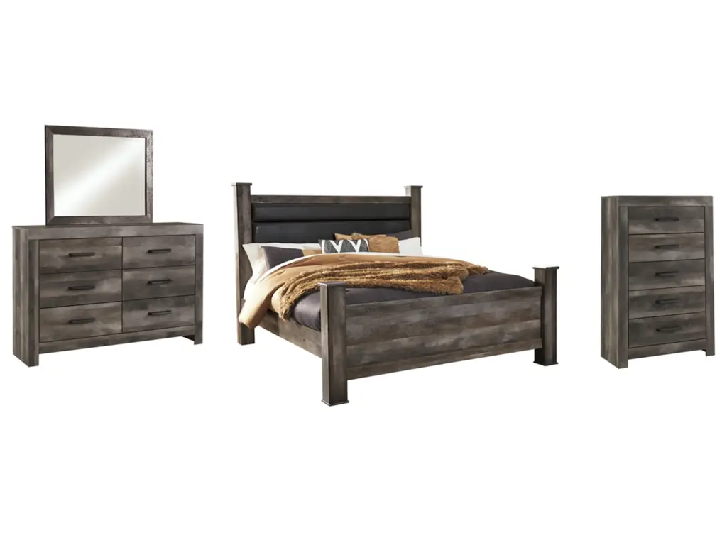 Wynnlow King Poster Bed With Mirrored Dresser And Chest