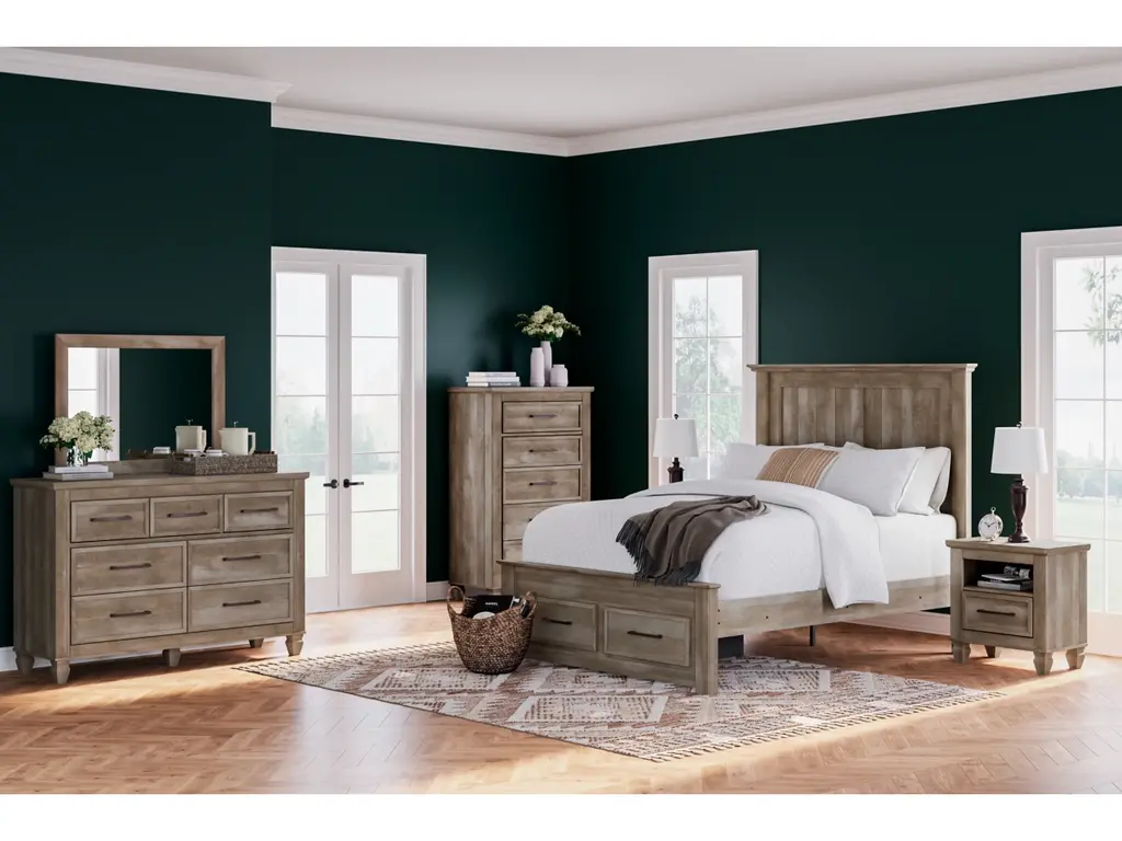 Traditional style doesn’t have to be stuffy. It can feel warm, inviting and beautiy in the moment. Case in point: the Yarbeck panel bed. Merging yesteryear elements with a relaxed modern farmhouse sensibility, this -scale piece has an allure all its own. Equally special is the rustic finish, which exudes a mood of pastoral charm. Smooth-gliding drawers make this bed as practical as it is beautiful.
