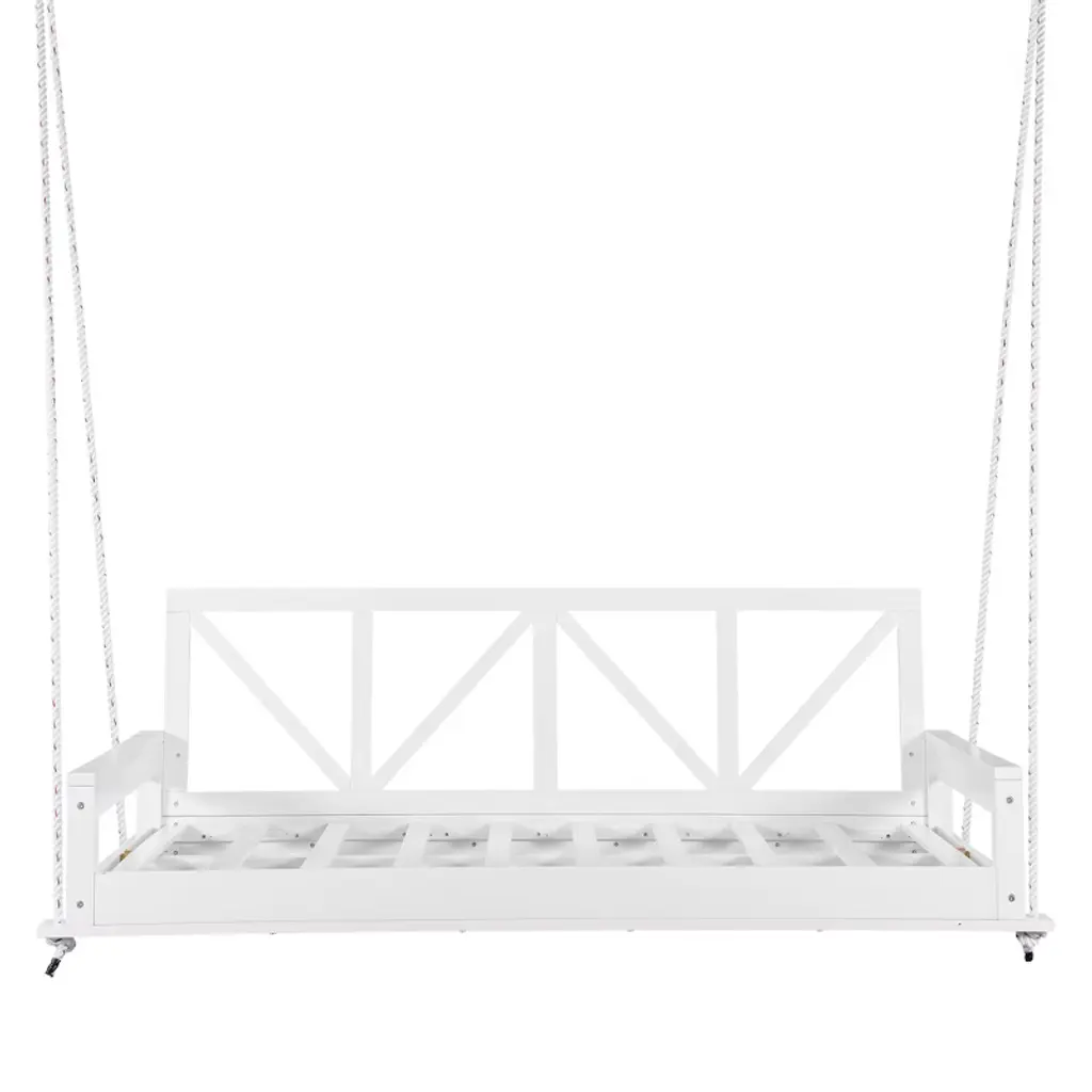 Yoocozz Acacia Wood Patio Modern Twin Size Swing Bed With 16.4ft Hemp Rope-white