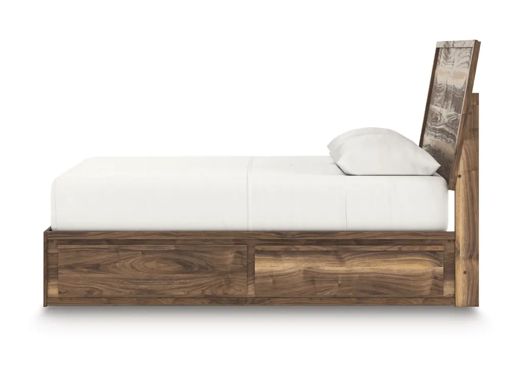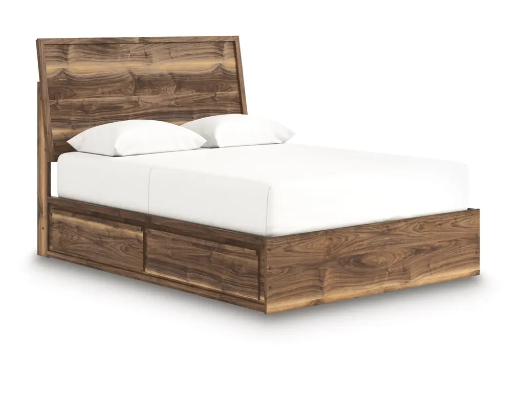 Nostalgic style, retooled for today’s trends. The Zadilyn panel bed with storage puts an elevated twist on mod aesthetics. Its warm brown tones reflect the mid-century vibes you love, while the simple panel design incorporates contemporary motifs. Ultra-spacious storage in the footboard keeps clutter out of sight. Integrated drawer handles round out the look in sleek style. With this bed, you can build your bedroom into a modern haven with a touch of retro-cool flair.