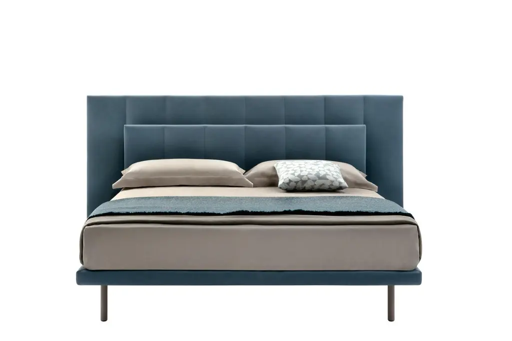 Zanotta King Size Grangala Bed With Single Springingin In Grey Upholstery