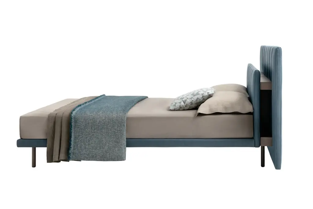 Zanotta Queen Size Grangala Bed With Separate Springing In Grey Upholstery