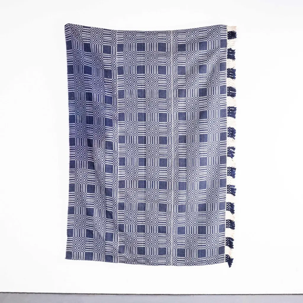 1950’s Handmade Blue & White Folk Hungarian Wool Bedspread. We have been collecting these for some time, they are hard to find and very beautiful. We have a number of blankets often of similar designs, all woven by hand in simple traditional patterns. Made in wool they are a decent weight and feature rich colours and traditional patterns. The selvedge edges are finished by hand. The listing is for one blanket as listed and photographed. Every blanket is unique although in a few exceptional cases we have managed to collect more than one of a design and hence a small quantity might be available.Workshop Report:Delicate handwoven textile product do not machine wash, we recommend very gentle hand washing or check with a drycleaner.Date:1950'sMaker:Handmade – HungaryDimensions:141cm(w) x 193cm(l) x 1cm(h)