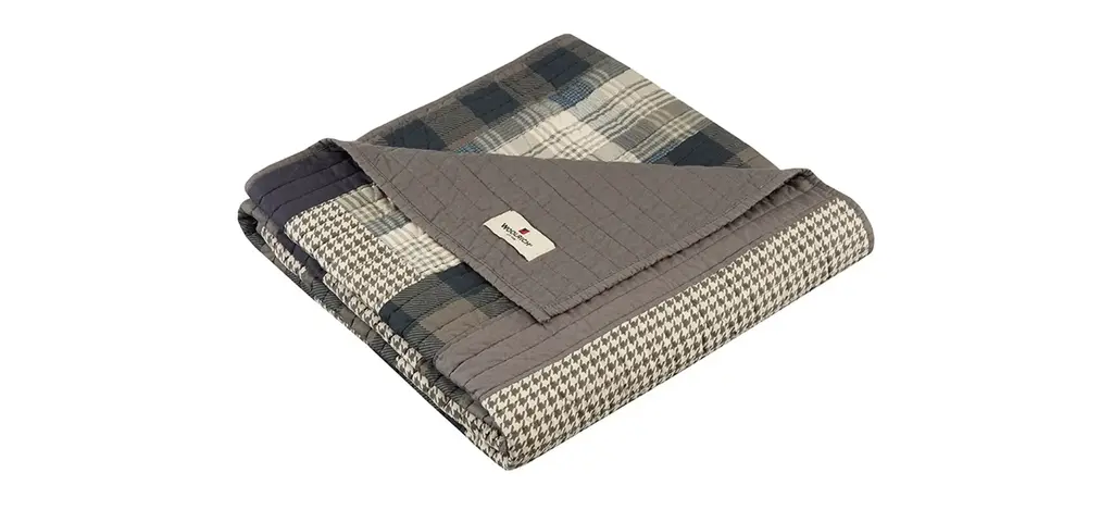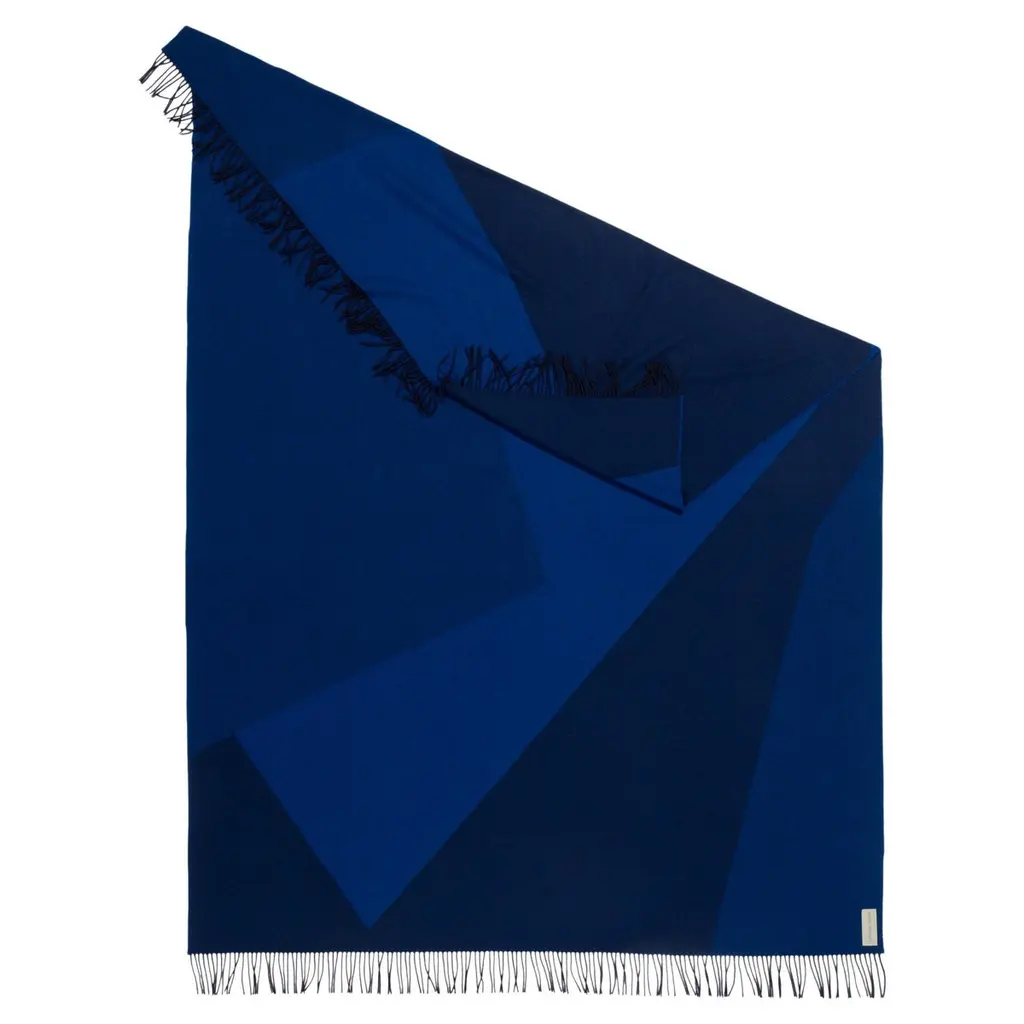 Bedspread Zigzag Woven Of Extra Fine Merino In Blue By Catharina Mende