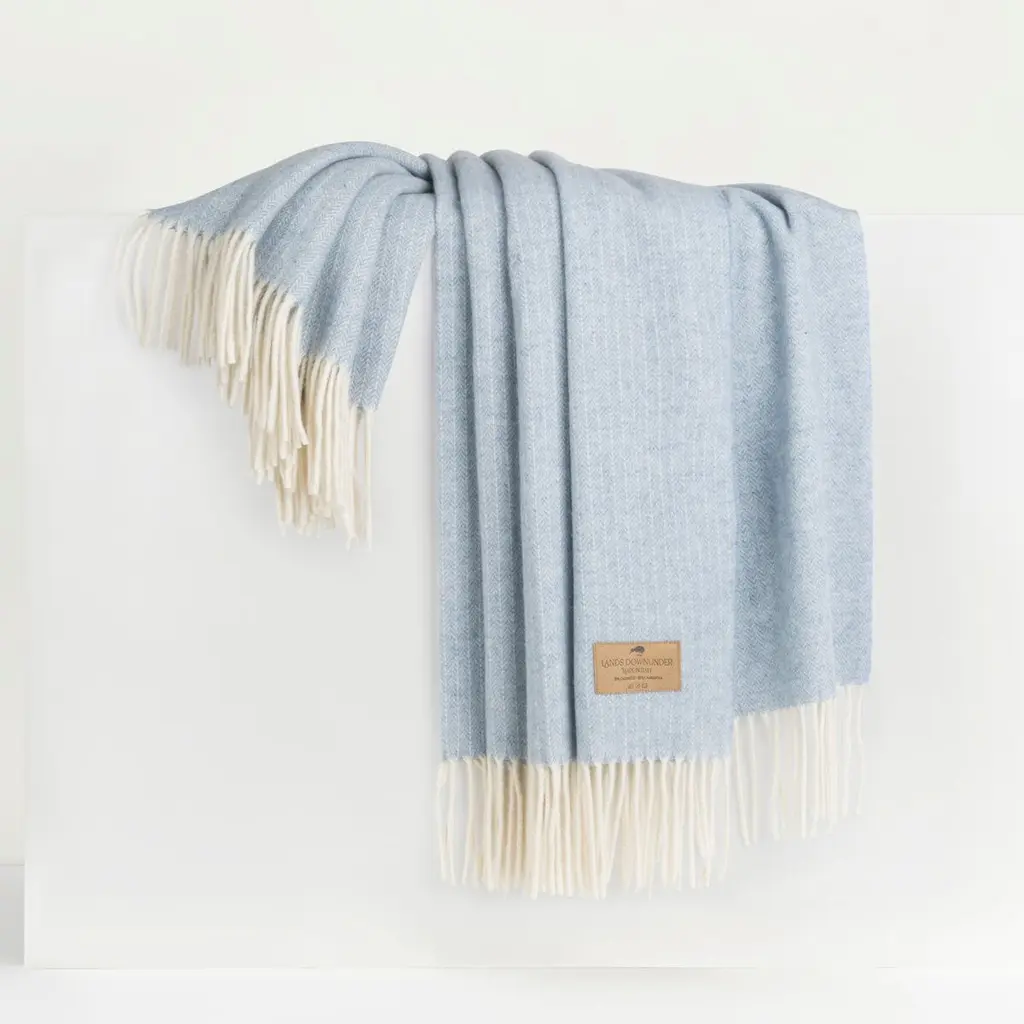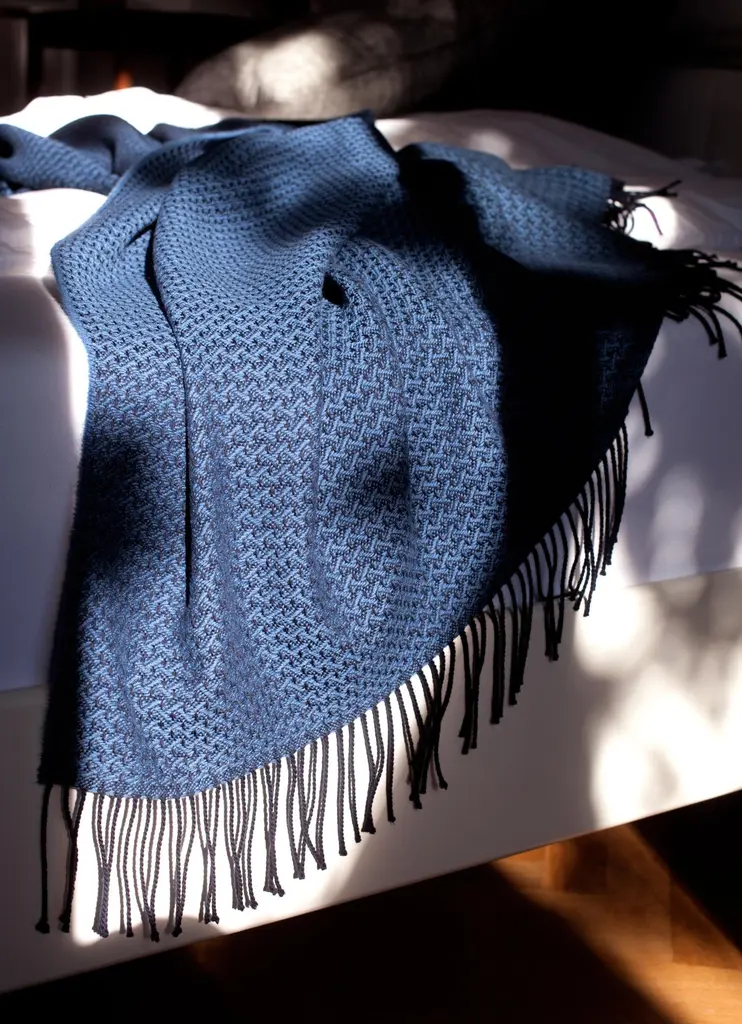 Designed in Berlin by Catharina Mende, woven of 100% extra fine merino in Scotland: This exquisite bed throw in color blue, woven in Scotland from finest extra fine merino, is a piece of beauty and elegance for every bedroom - day and night, winter and summer. The bed throw is a long living and soothing favorite piece of exquisite quality. The size of 150 x 250 cm (59 in x 98,4 in) and the unique material and elaborately woven zigzag structure make the throw a perfect timeless and elegant accessory for every bedroom. The classic timeless color which comes from two different blue tones that are used in the woven structure and the exquisite craftsmanship make the blanket suitable for both a classic and contemporary interior. This piece is made with great effort and love for details.We no longer want to hide our bedrooms from other people's eyes, because they have developed into extended living space in our houses and apartments and have become part of an overall concept of our living enviroment.