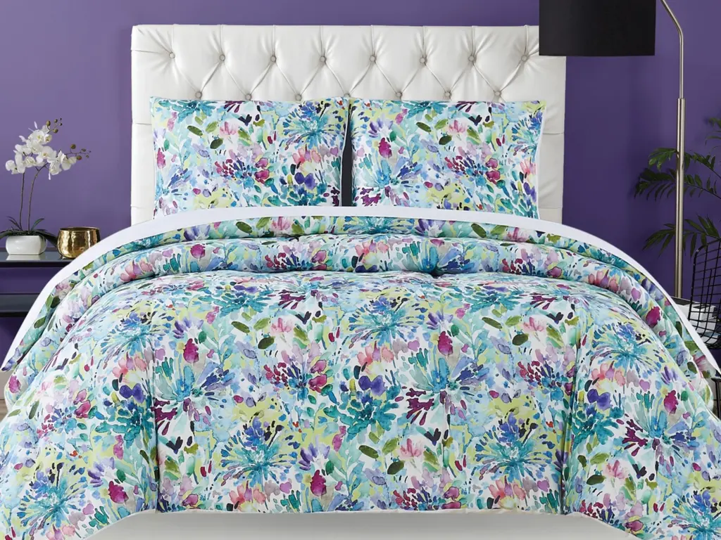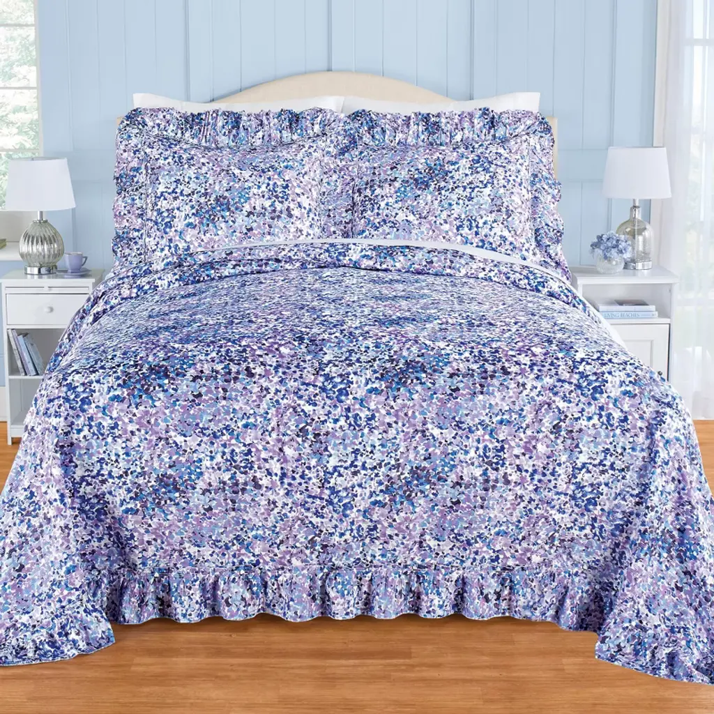 Add Colorful Style And Elegance To Any Bedroom With This Lovely Bedspread. The Lightweight Plissé Bedspread Features A Beautiful Watercolor Inspired Design In Shades Of Blue And Lavender Atop A White Background. Ruffled Edges Add The Perfect Finishing Touch. Matching Shams Sold Separately. Machine Wash. Polyester; Imported. Choose: Twin (110" X 80"), Full (110" X 96"), Queen (118" X 102") Or King (120" X 118").
