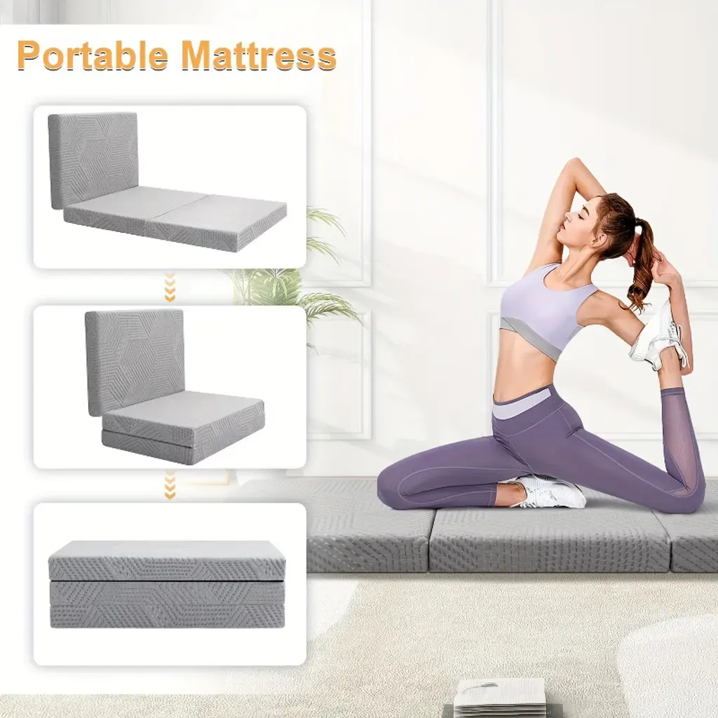 Dyonery Three-fold Memory Foam Mattress, 3/4-inch Single-fold Mattress, Foldable And Washable Bedspread, Travel And Guest Pad, Grey