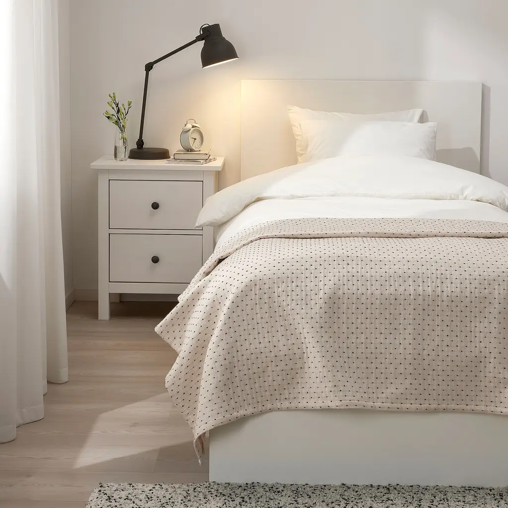 JAKOBSLILJA Bedspread - off-white/gray 59x98 ". This off-white bedspread with decorative dark grey stitching coordinates easily with other textiles in our range. Can be used as a bedspread for a single size bed or as a blanket for a larger bed. Fits a Twin bed.