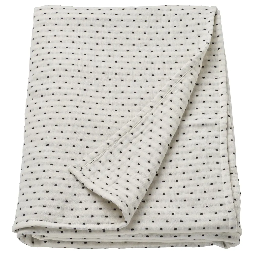 JAKOBSLILJA Bedspread - off-white/anthracite King. Made of 100% cotton ‒ a natural and durable material. This bedspread is suitable for a double bed. The bedspread fits 35⅜" beds with approx. 12" drop on each side. Fits a Twin bed.