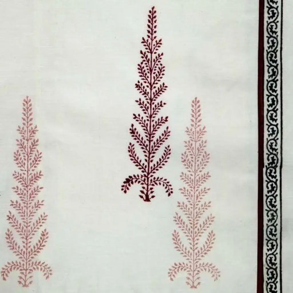 The Juniper bedspread depicts a stylized juniper tree motif hand block printed in a wine and pale pink color palette. Scrolling borders in black beautifully frame the motifs for a striking finish. Introduce understated opulence to your bedroom with our luxurious silk-cotton bedspreads that once satisfied the refined tastes of the aristocracy. Handcrafted in a region of Central India known for producing fine, lustrous silk-cotton fabrics, these luxurious pieces add a couture element to your home. Each motif is carefully hand block printed using ancient techniques, resulting in slight variations that make every piece in this collection truly unique. Layer in our silk artisanal pillow covers with these exclusive bedspreads, and you’ll feel like royalty as you climb into your grandiose bed. Materials: Bedspreads are made of fine weave silk-cotton with a 100% cotton backing. Crafts: Hand block printing. DIMENSIONS Bedspreads Queen: 90" wide x 108" long CARE & MAINTENANCE Protect from direct sunlight when using. Dry Clean only.