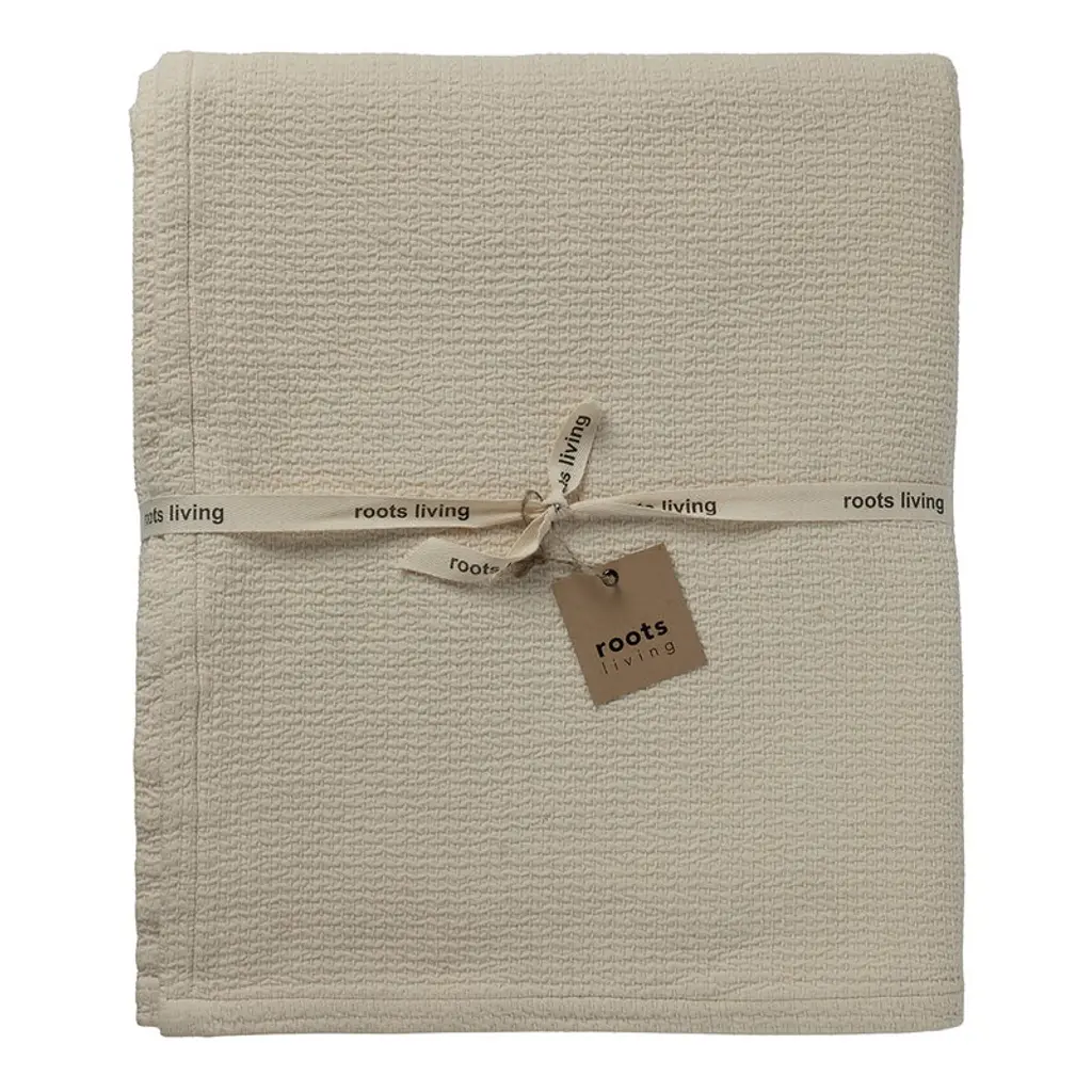 Roots Living's Polku bedspread is made of GOTS-certified cotton decorated with a delicate stitch pattern. The combination is both refined and relaxed at the same time. The bedcover lays on the bed lightly, airly, and feels so soft against your skin that you want to curl up under it to take a quick - or a little bit longer - nap! Designed by Ulla Koskinen, the 74.8 x 102.36 in (190 x 260 cm) bedspread is designed for beds 35.43 in (90 cm) or 47.24 in (120 cm) wide.