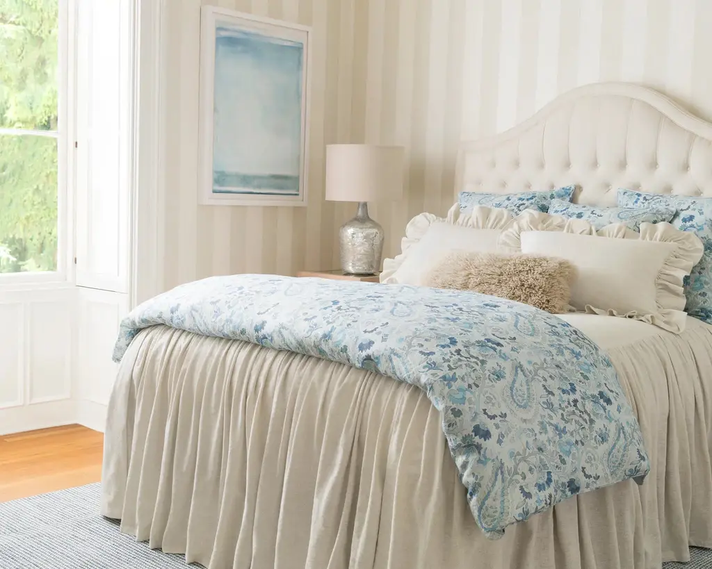An all-new cotton/linen take on one of our best-selling products. Bedspread has 30-inch, gathered drop.