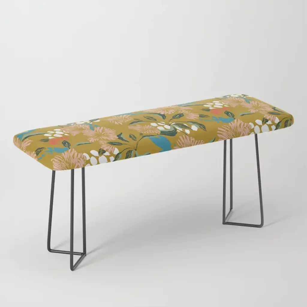 54"x19" Patterned Outdoor Spun Polyester Bench Cushion, Gregoire Chamomile