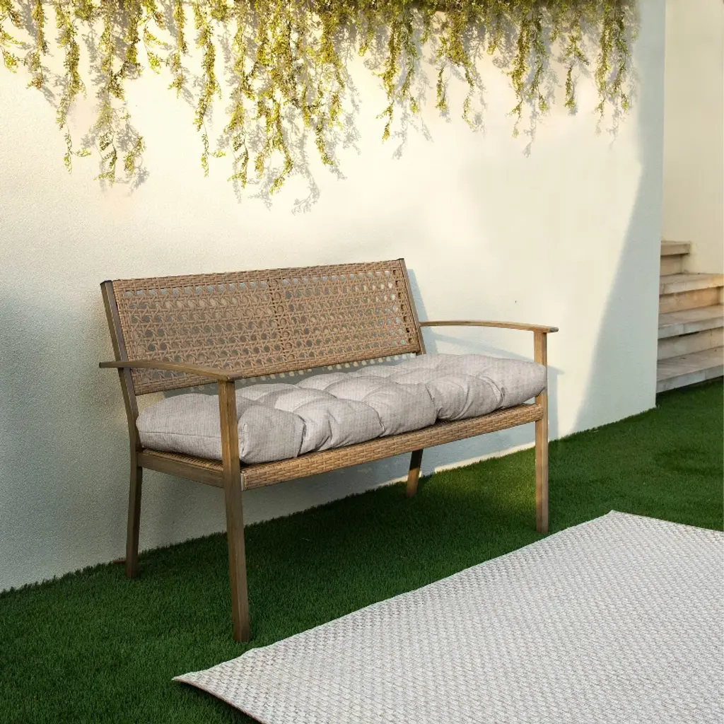 Sit back in style in your own outdoor paradise with this luxurious gray tufted Sunbrella bench cushion. With a fresh solid fabric, this tufted cushion is sure to add flair and a personal touch to any outdoor bench, from the backyard to the patio. Created with durable, weather and fade-resistant material in North America, this cushion offers quality you can depend on year after year!