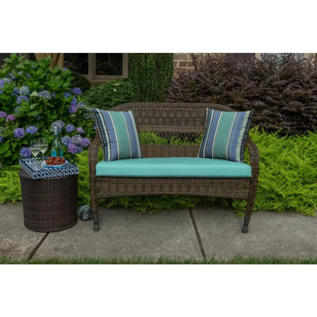 This indoor/outdoor wicker settee cushion in Sunbrella™ fabric is made for comfort and durability, it's fade and water resistant to stand up to all forms of weather. With a rounded back.