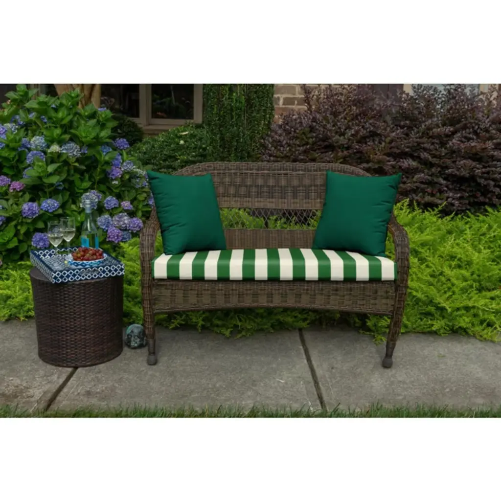 Casual Cushion Stripe Sunbrella Fabric 1-piece Indoor/outdoor Wicker Bench Cushion, 43.5"w X 19.5"l, Maxim Forest Green