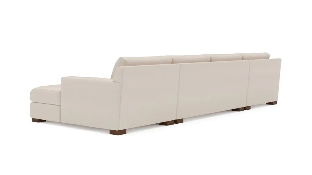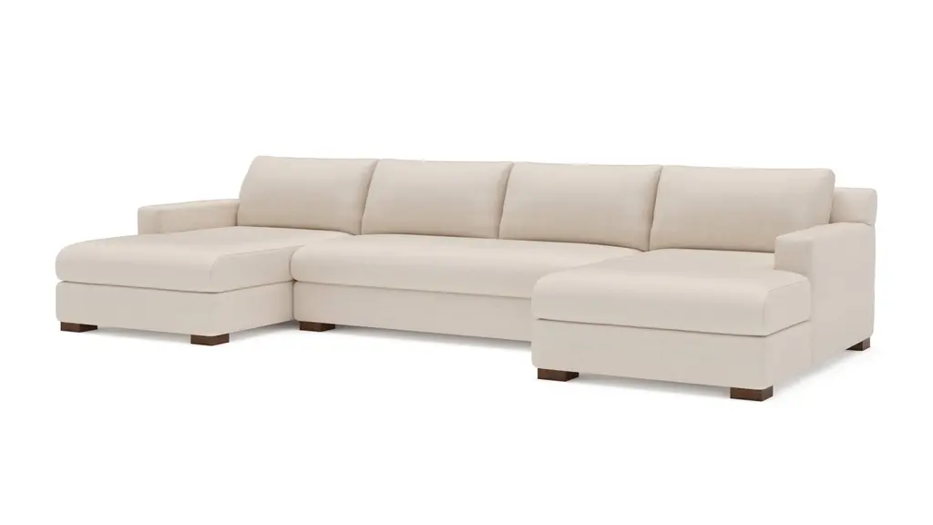DESIGNThe Catalina Double Chaise Sectional redefines modern living with its emphasis on unparalleled comfort and sleek design. Sink into in plush relaxation with the sectional's waterfall seat cushions and supportive back cushions, crafted for enduring luxury. Our innovative cushion construction delivers a soft seat that maintains its shape, ensuring both comfort and longevity.Catalina's clean lines and functional design create a sophisticated yet inviting atmosphere. The built-in pitch invites you to unwind, while the modern interpretation of a classic silhouette adds a touch of elegance. With a cozy chaise, the Catalina sectional is the perfect spot to curl up with a good book or entertain guests in style.Crafted for lasting comfort and personalized style, the Catalina Double Chaise Sectional is backed by our limited lifetime warranty. FEATURES Solid Foundation: Our frames are constructed from precision-cut, FSC-certified engineered wood for unmatched strength and stability, featuring reinforced, interlocking joinery for added durability. Crafted for Coziness & Durability: Seat cushions are made from high-quality, high-resiliency CertiPUR-US® foam wrapped in fiber; back cushions are filled with 100% premium fiber for a cozy sit that doesn't require frequent fluffing. CertiPur-US® foam is held to the highest standards of product safety and durability, so you can rest easy. Supportive Webbing Suspension: Designed to maximize comfort, our premium webbing system provides a resilient foundation. Customizable Upholstery: Choose from a vast selection of durable premium and performance fabrics and genuine Italian leather to personalize your Catalina Sectional's look.