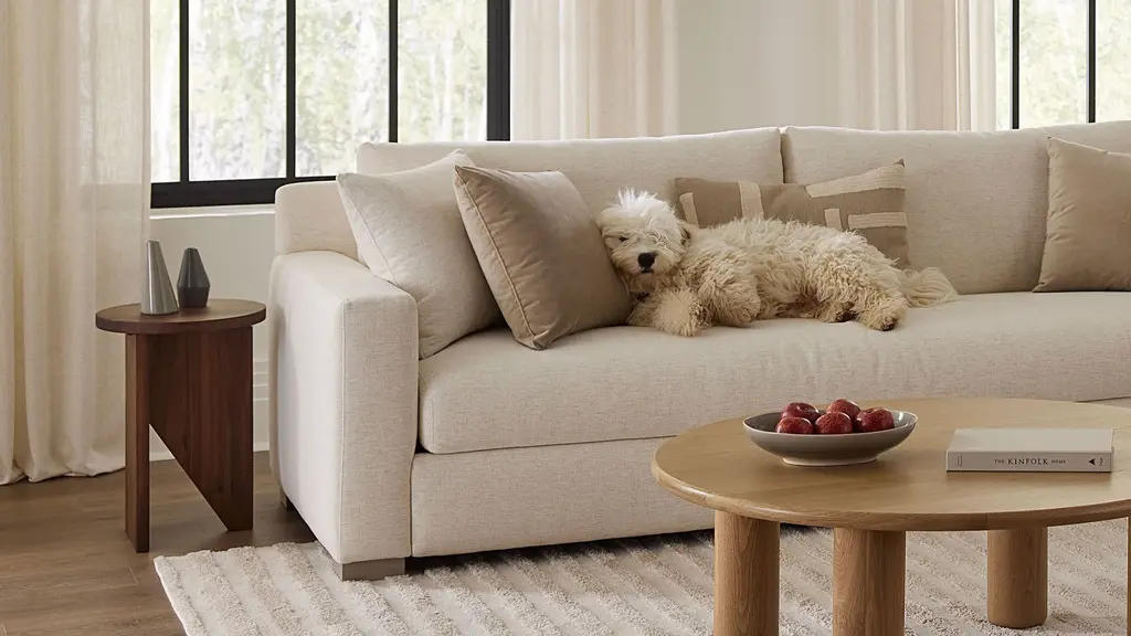 DESIGN The Catalina collection redefines modern furniture with its focus on unparalleled comfort. Sink into pillowy softness with the Catalina Sectional's waterfall seat cushion and cozy back cushions, all designed for a luxurious feel with lasting support. Our new cushion construction provides a plush seating experience that retains its shape, ensuring both comfort and support. Catalina's design emphasizes clean lines and functionality. The built-in pitch beckons relaxation, while the modern take on a classic silhouette adds a touch of sophistication. The non-reversible bullnose seat cushion provides a sleek and undeniably seamless modern look. Cozy corners invite you to curl up with a good book, while the tailored design ensures the collection feels both stylish and approachable. FEATURES Solid Foundation: Our frames are constructed from precision-cut, FSC-certified engineered wood for unmatched strength and stability, featuring reinforced, interlocking joinery for added durability. Crafted for Coziness & Durability: Seat cushions are made from high-quality, high-resiliency CertiPUR-US® foam wrapped in fiber; back cushions are filled with 100% premium fiber for a cozy sit that doesn't require frequent fluffing. CertiPur-US® foam is held to the highest standards of product safety and durability, so you can rest easy. Supportive Webbing Suspension: Designed to maximize comfort, our premium webbing system provides a resilient foundation. Customizable Upholstery: Choose from a vast selection of durable premium and performance fabrics and genuine Italian leather to personalize your Catalina Sectional's look.