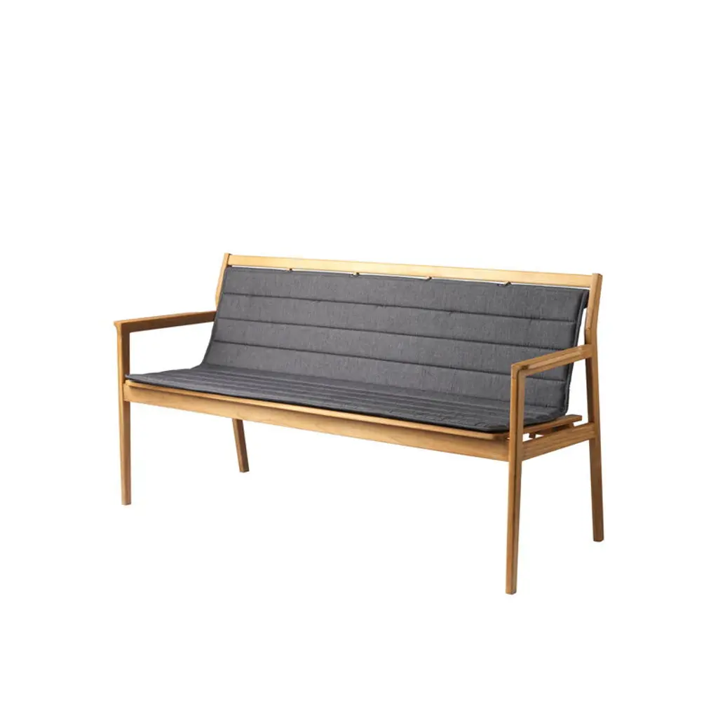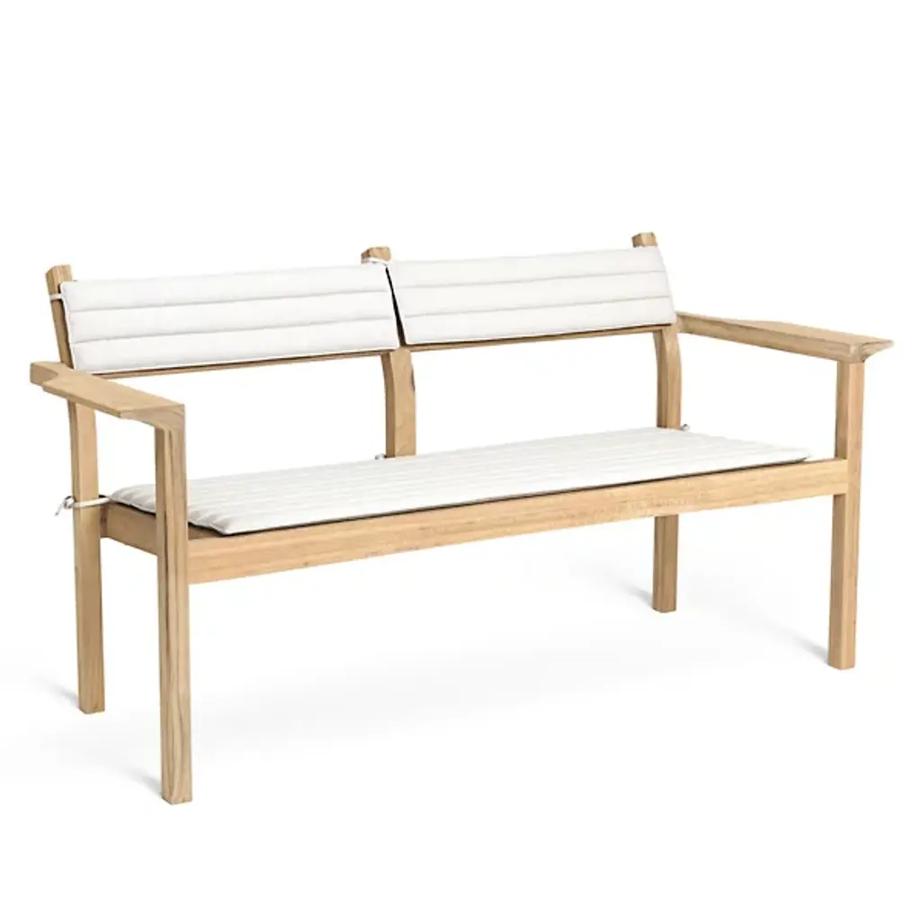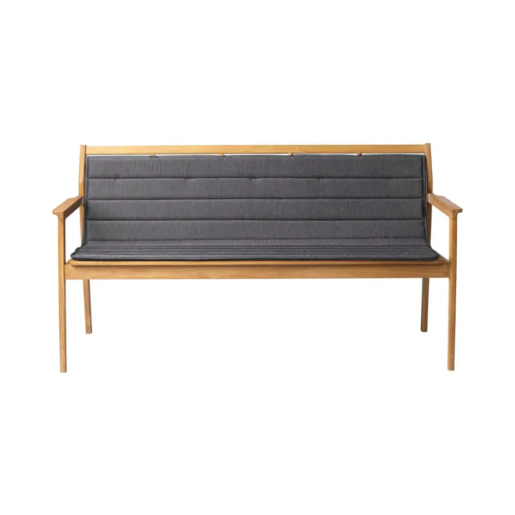 This seat cushion is designed for FDB Møbler’s Sammen 3-seater bench with backrest, transforming the bench into an elegant wooden sofa. Made of acrylic, the cushion is decorated with horizontally quilted stripes that perfectly complement the teak bench’s classic design.