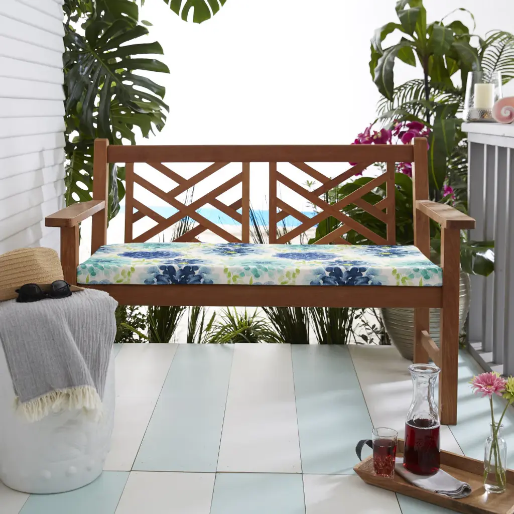 Start creating an outdoor ambiance you can appreciate with the help of this adorable bench cushion! Featuring a rich, Gardenia Seaglass color hue in a gorgeous Floral pattern fabric, this pillow set is sure to add comfort to your space and encourage you to enjoy the fresh air much more often! Crafted out of a performance material right here in North America, this bench cushion is built to withstand all of the sun, stains and weather that come your way.